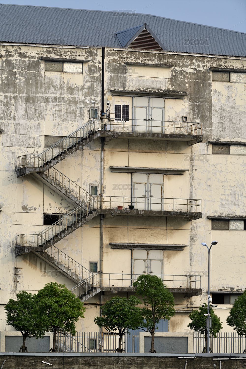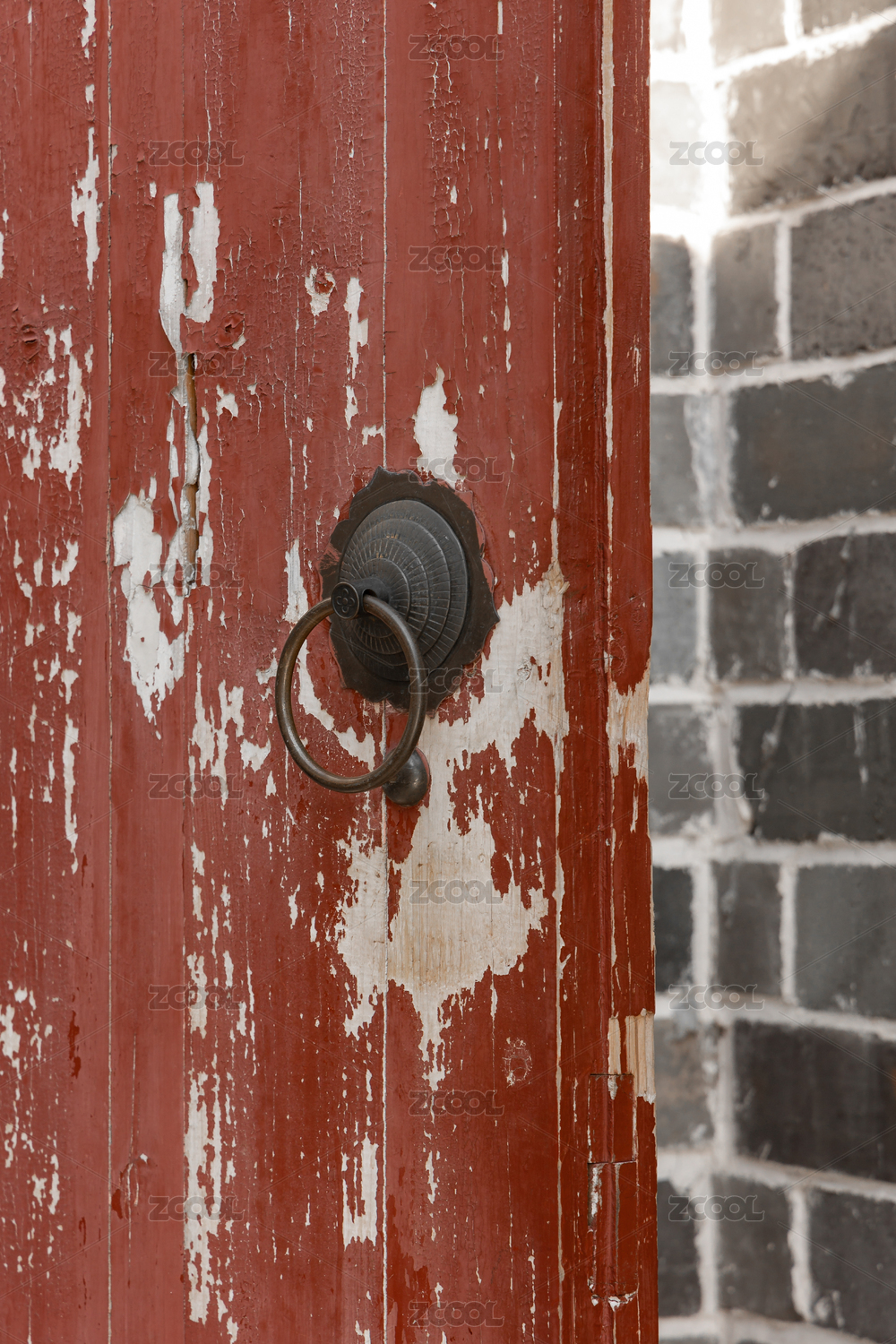 一扇年代久遠的古樸斑駁藍色油漆倉庫木門