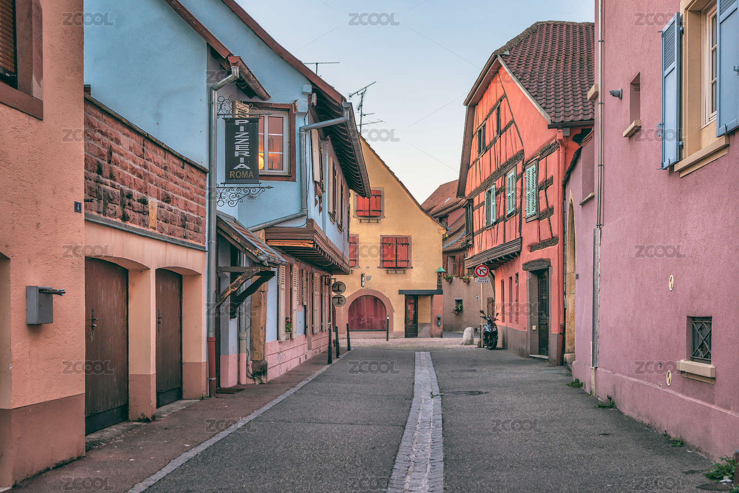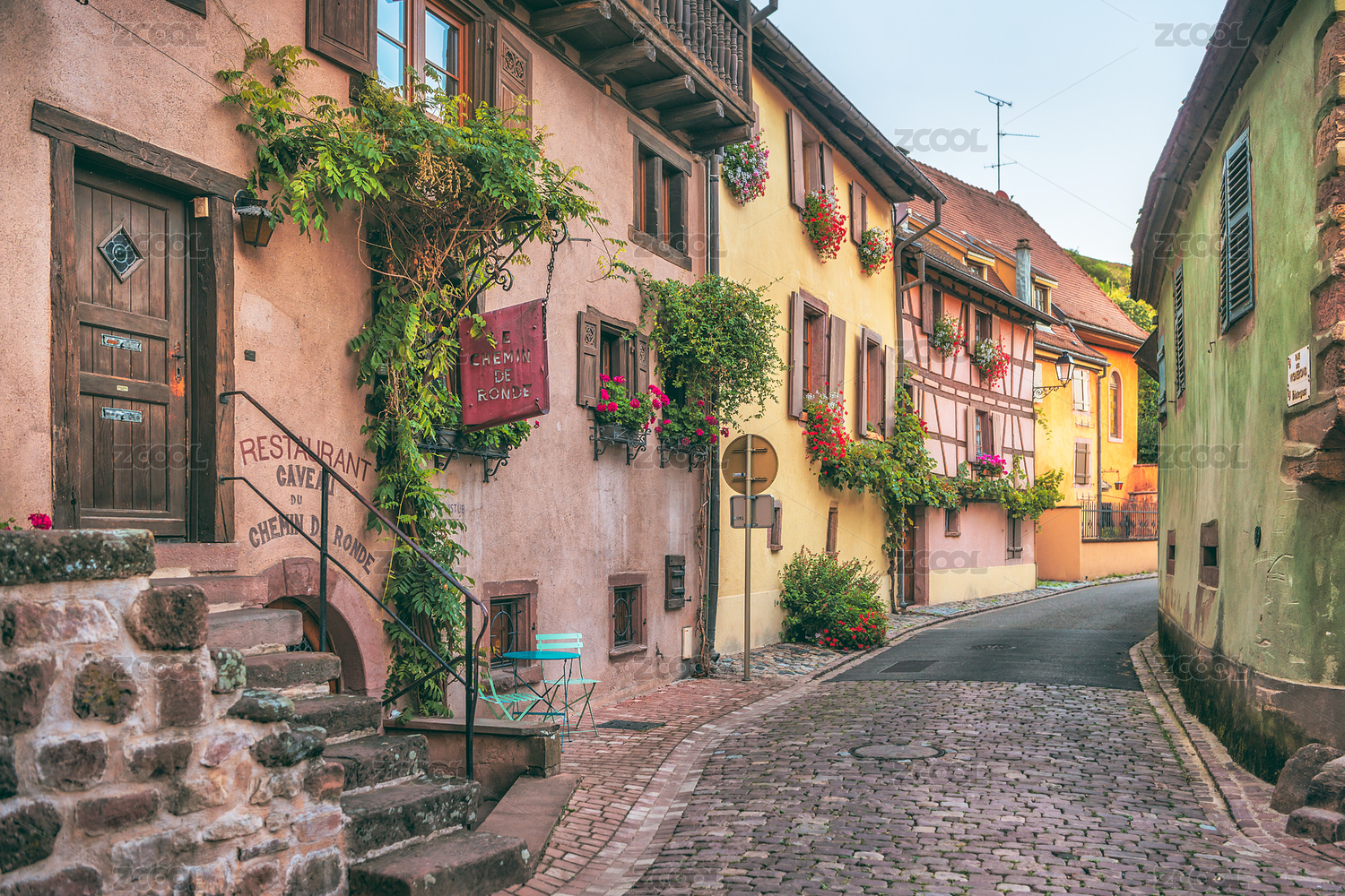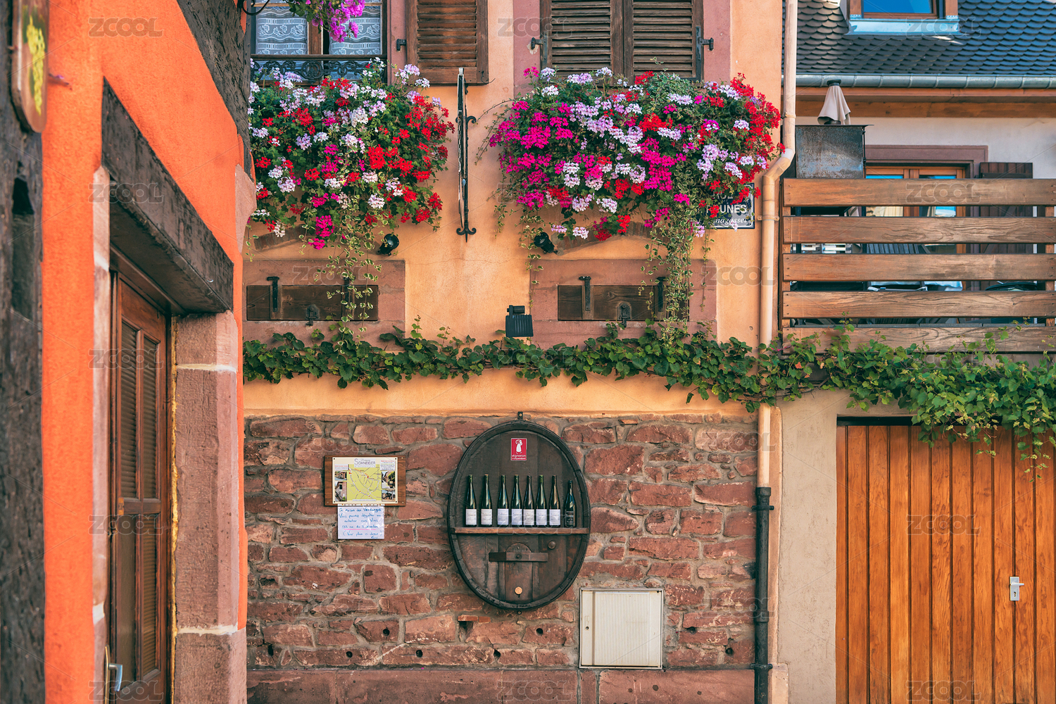 歐洲法國(guó)傳統(tǒng)鮮花小鎮(zhèn)街景建筑