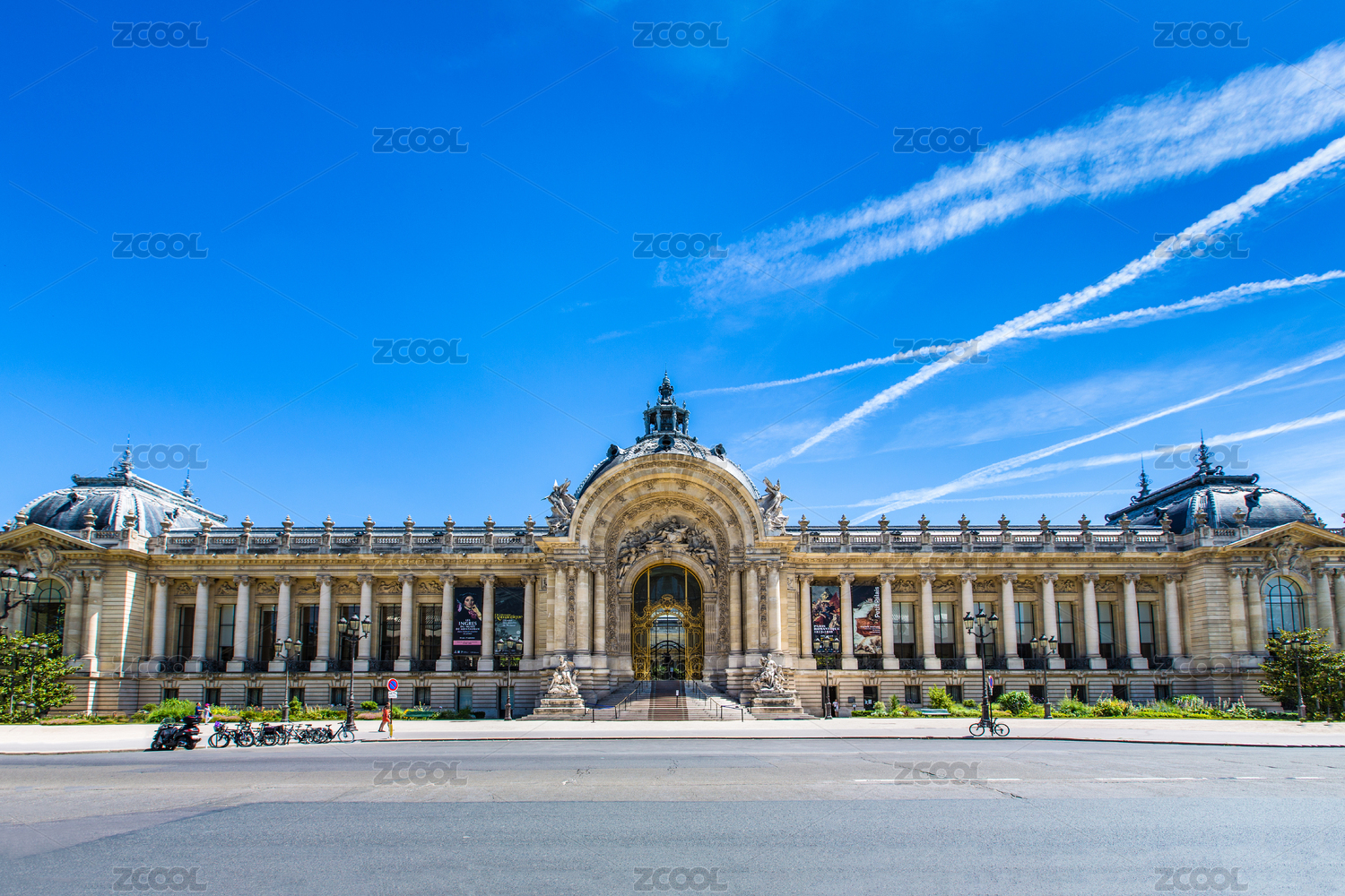 藍(lán)天白云下的法國(guó)巴黎著名地標(biāo)建筑——小皇宮