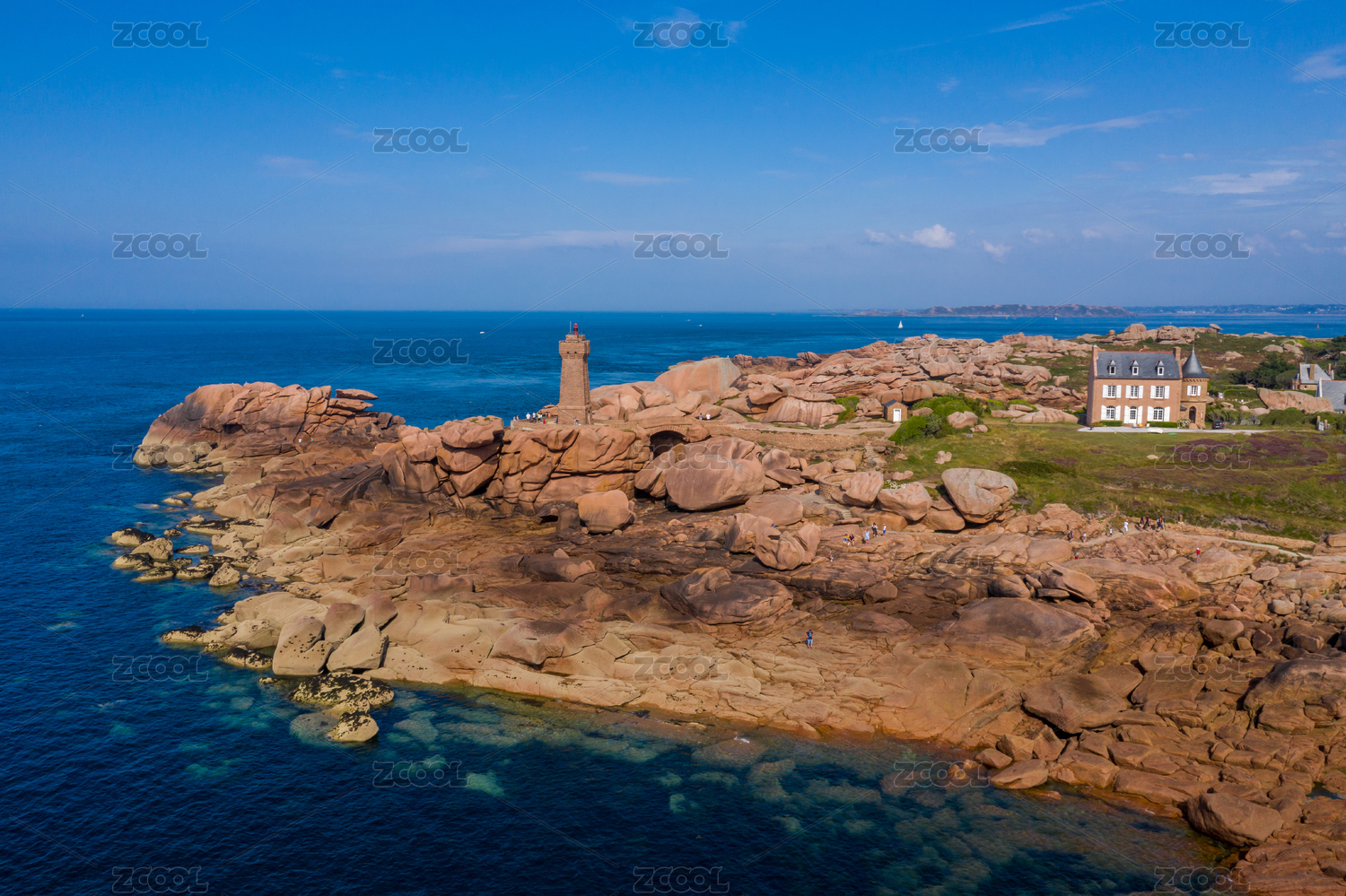 法國(guó)布列塔尼玫瑰海岸黃昏自然風(fēng)景航拍