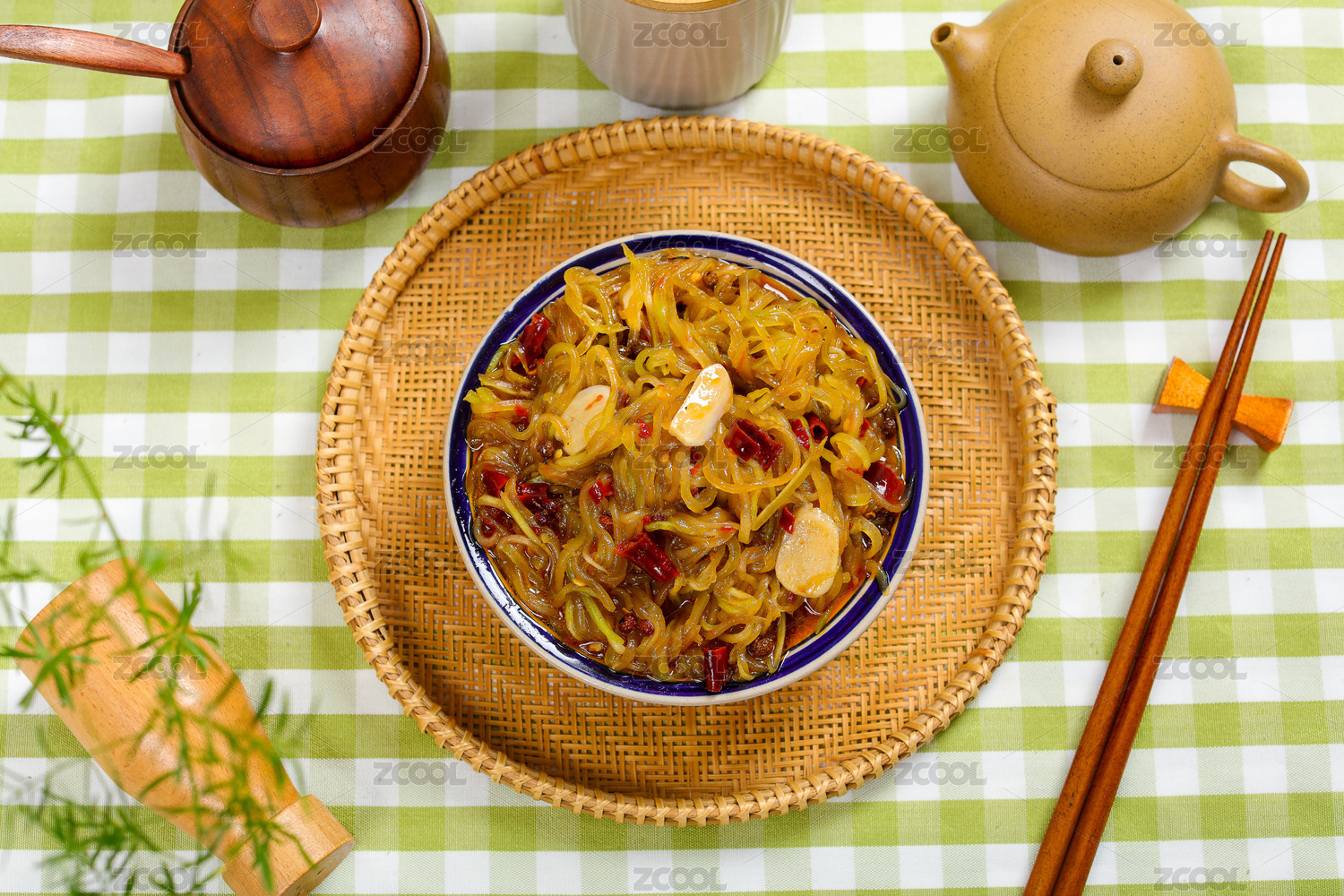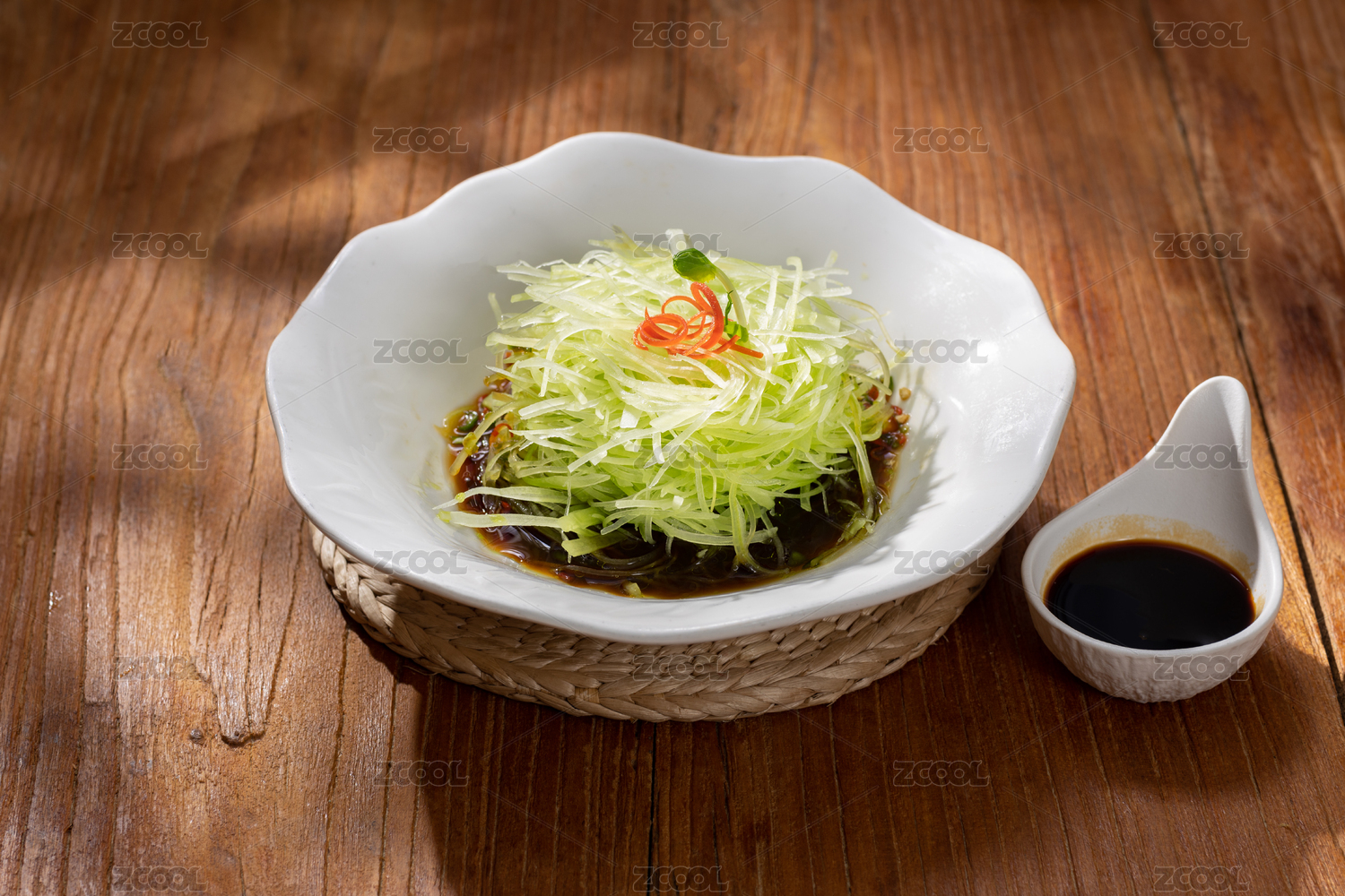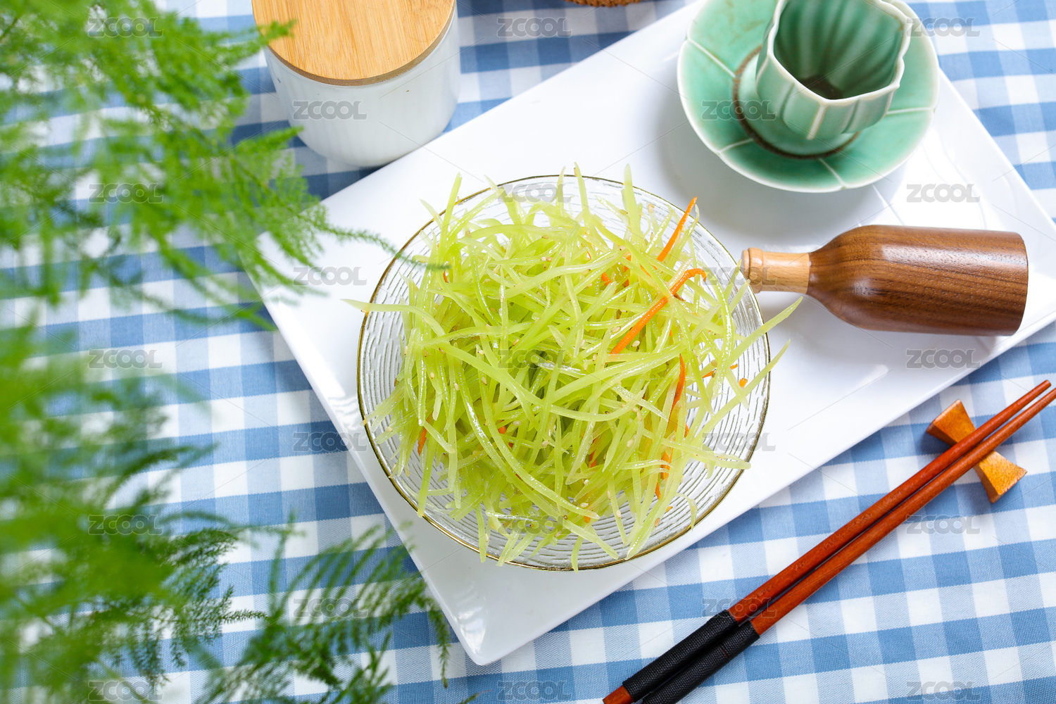 木桌上的涼菜涼拌萵筍絲