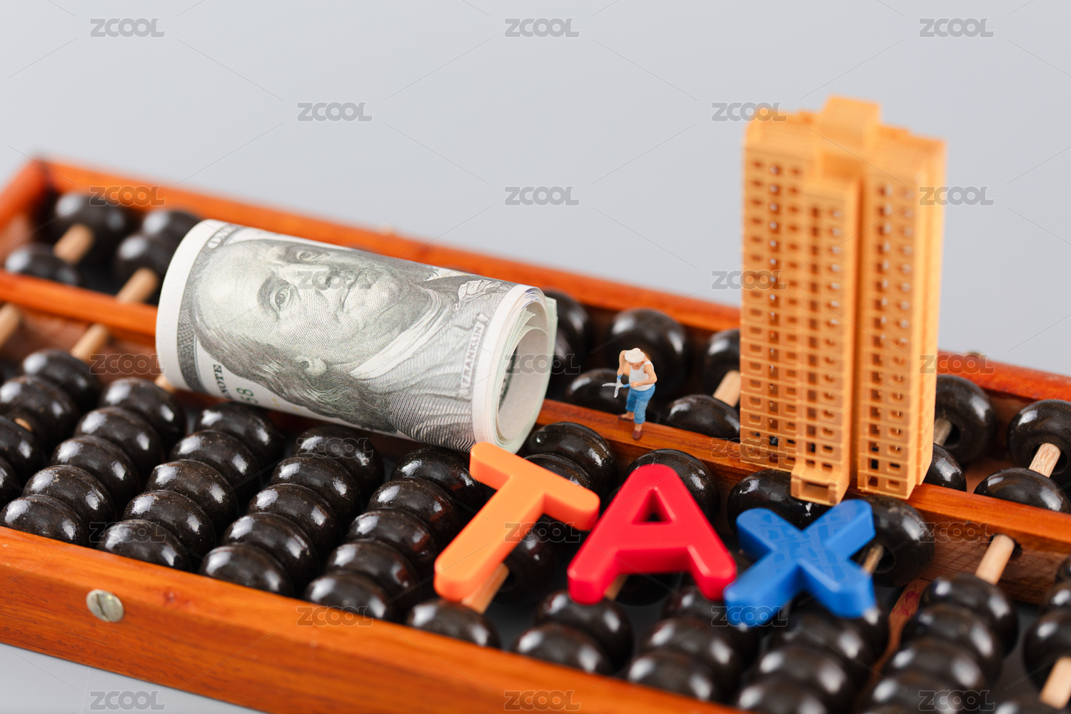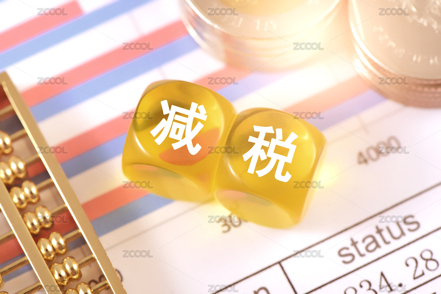 金融辦公用品上放著文字積木減稅