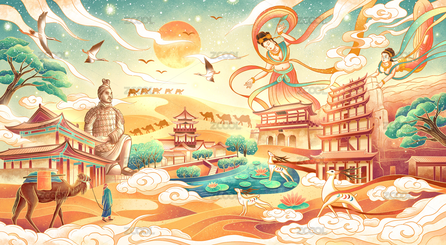 重陽節(jié)老人在公園打太極水墨風格插畫