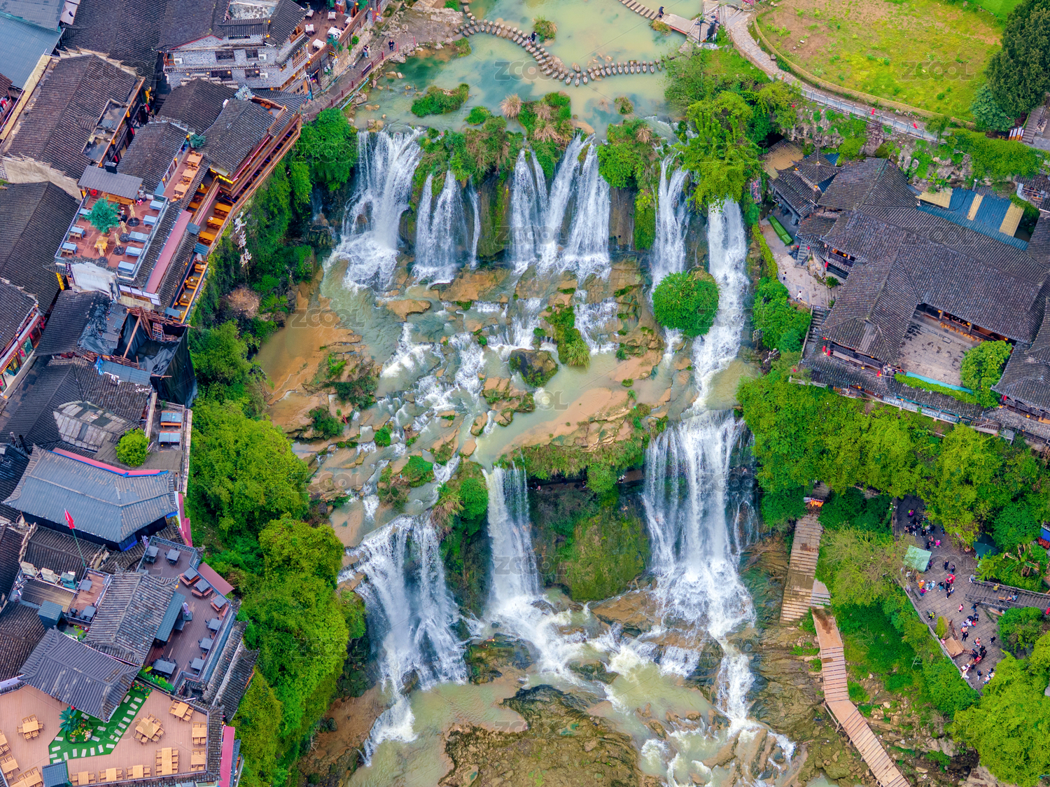 中國(guó)湖南湘西芙蓉鎮(zhèn)大瀑布航拍風(fēng)光