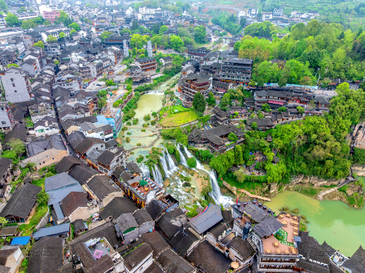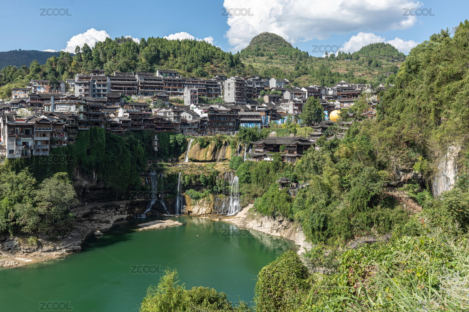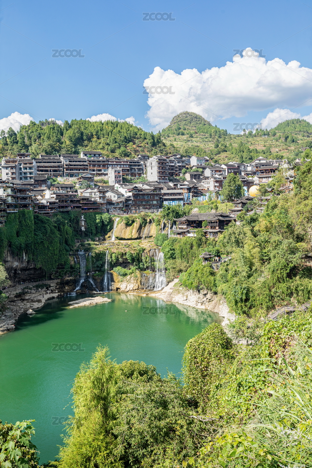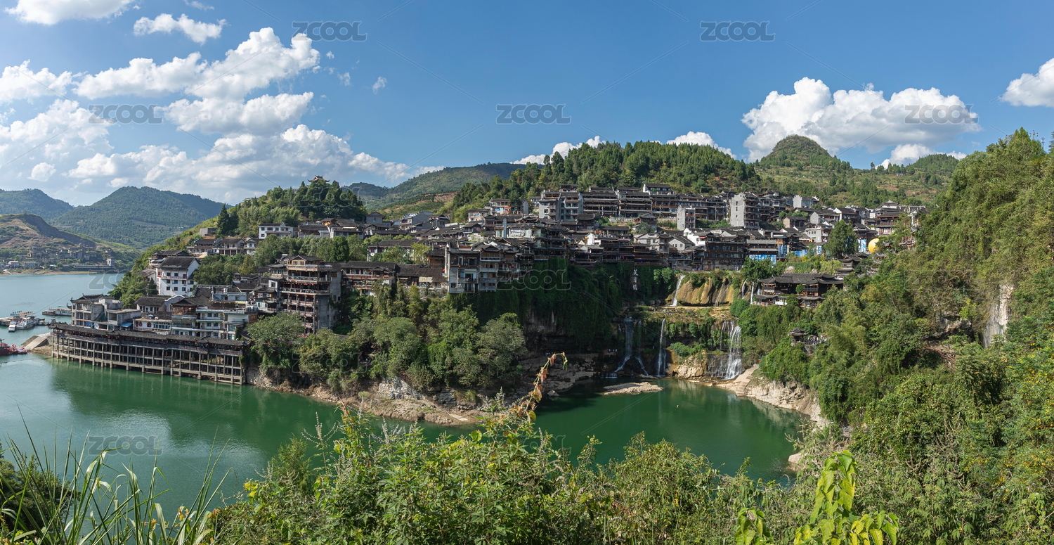 中國(guó) 湖南 湘西 芙蓉鎮(zhèn) 王村 王村芙蓉鎮(zhèn) 吊腳樓 依山傍水 瀑布 云霧