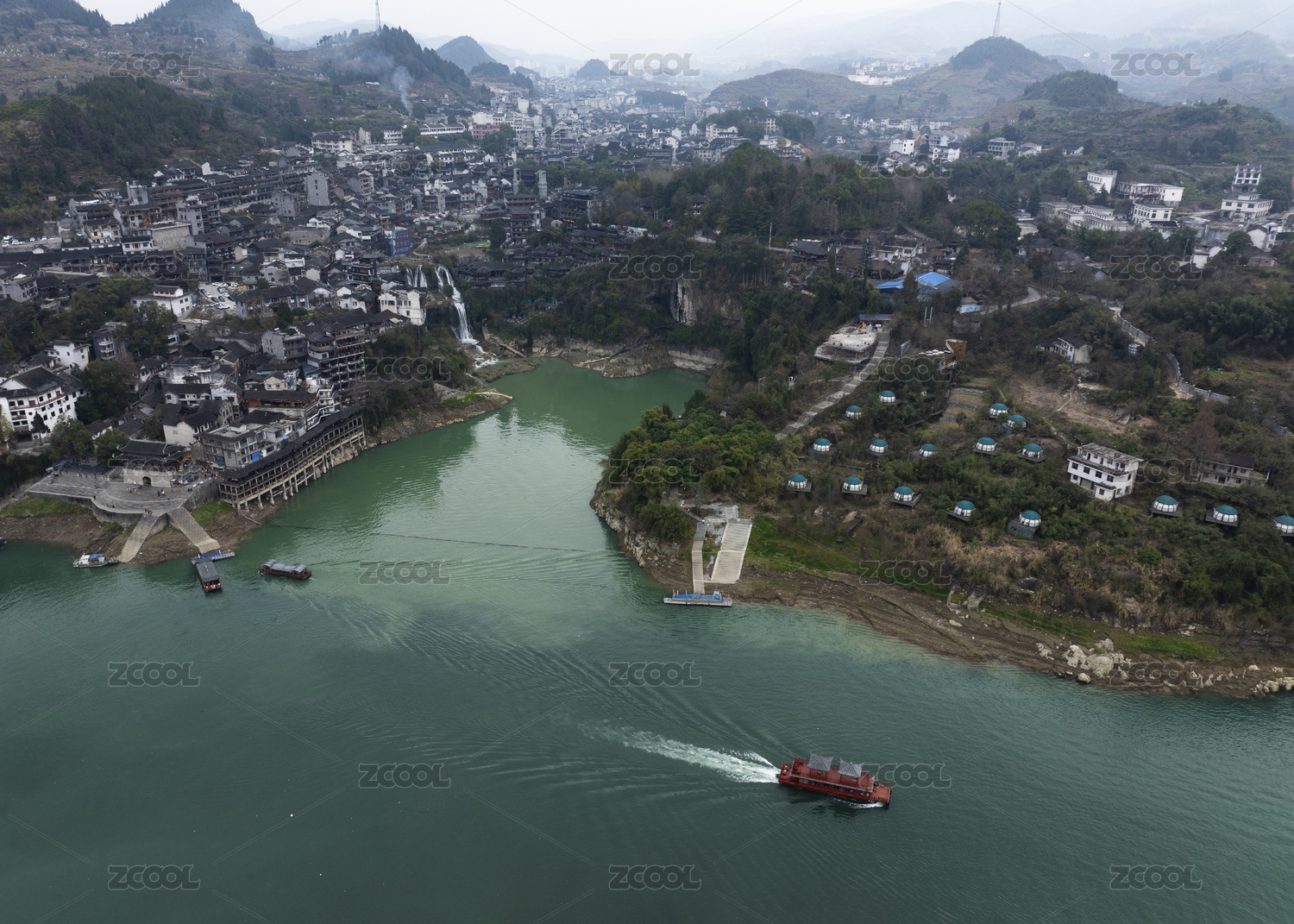 湖南湘西芙蓉鎮(zhèn)酉水河航拍風(fēng)光