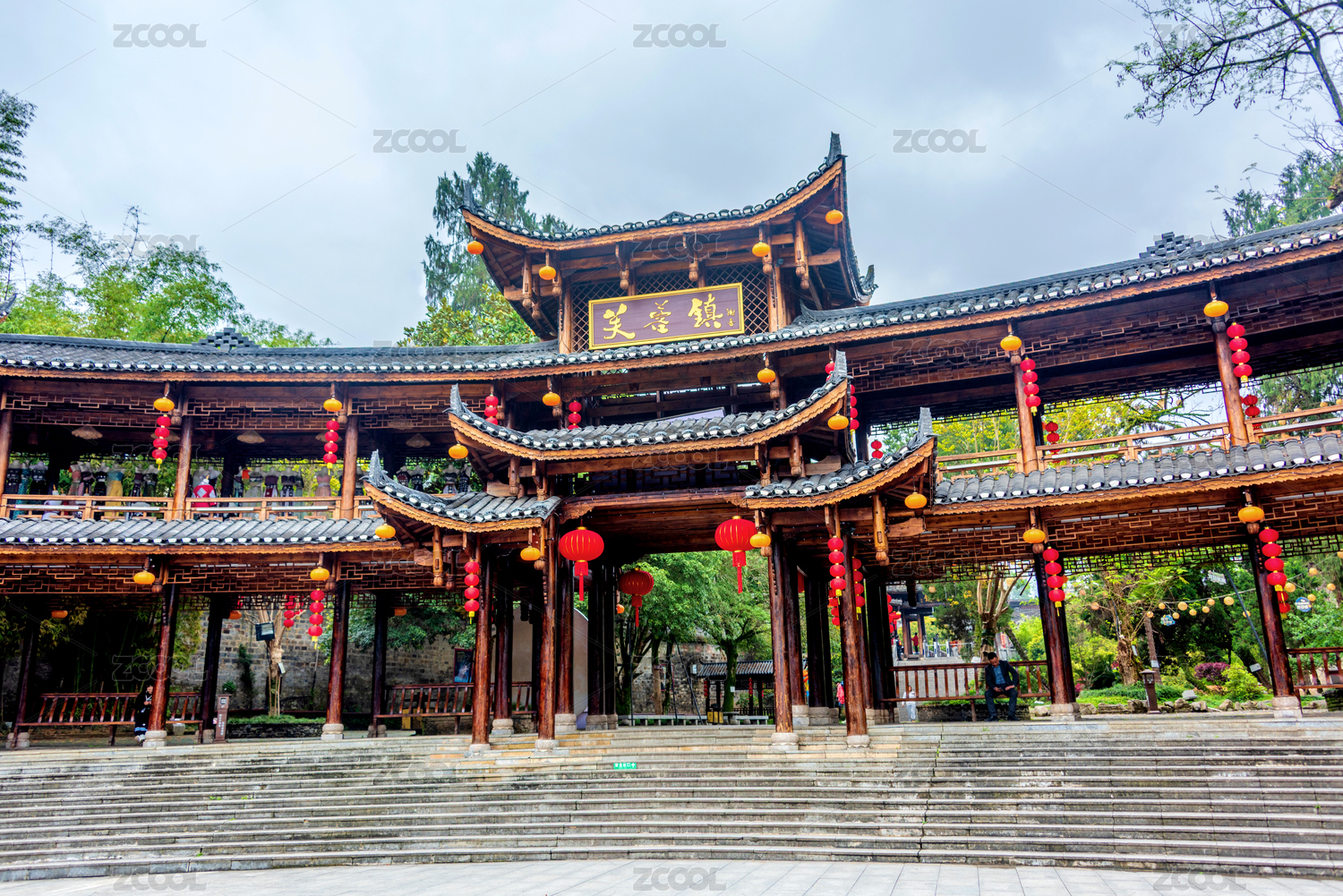 中國(guó)湖南省湘西古鎮(zhèn)古建筑芙蓉鎮(zhèn)擺手堂