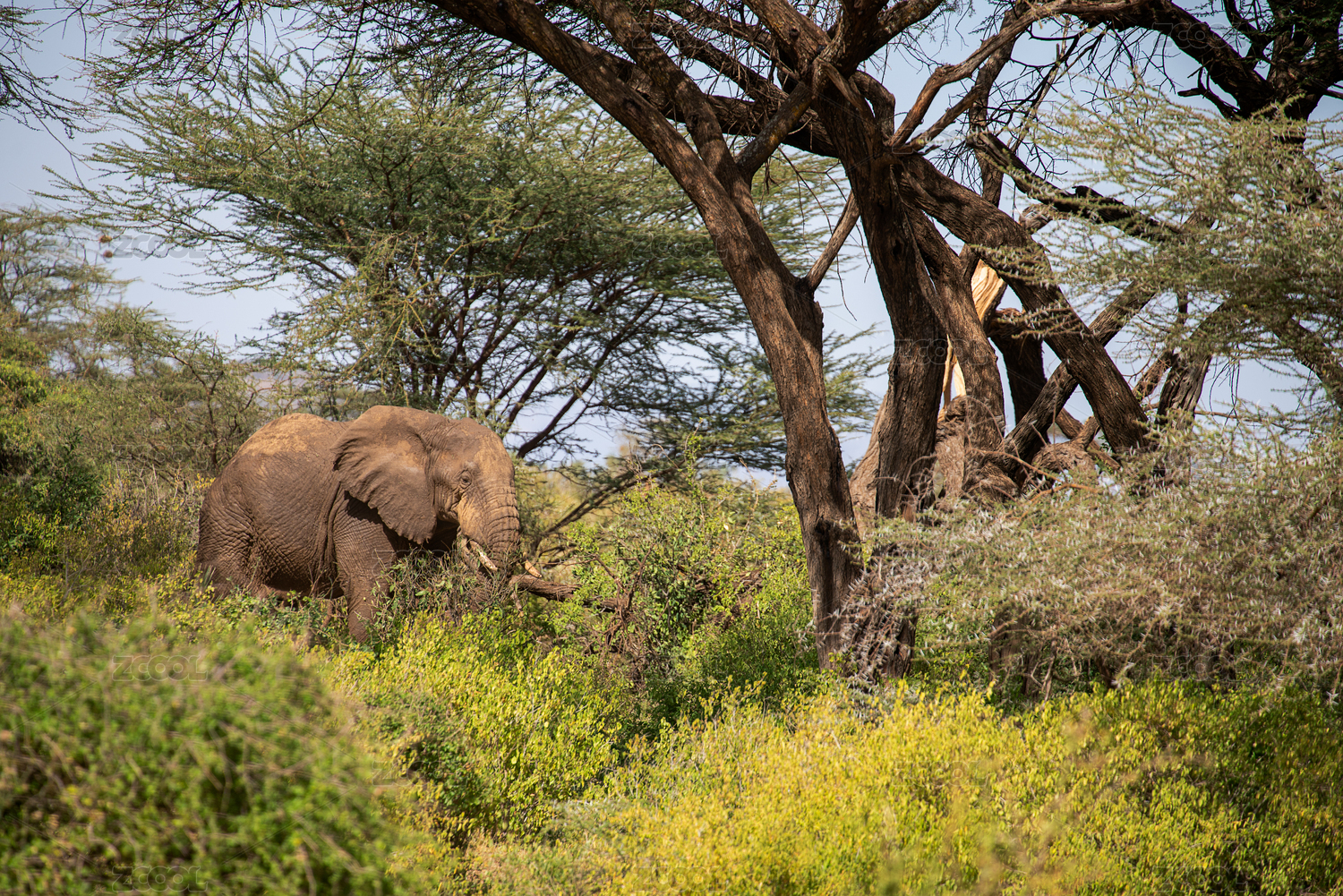 非洲肯尼亞桑布魯森林中的大象中景