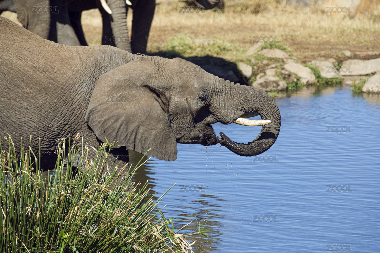 非洲大象把鼻子放進(jìn)嘴里