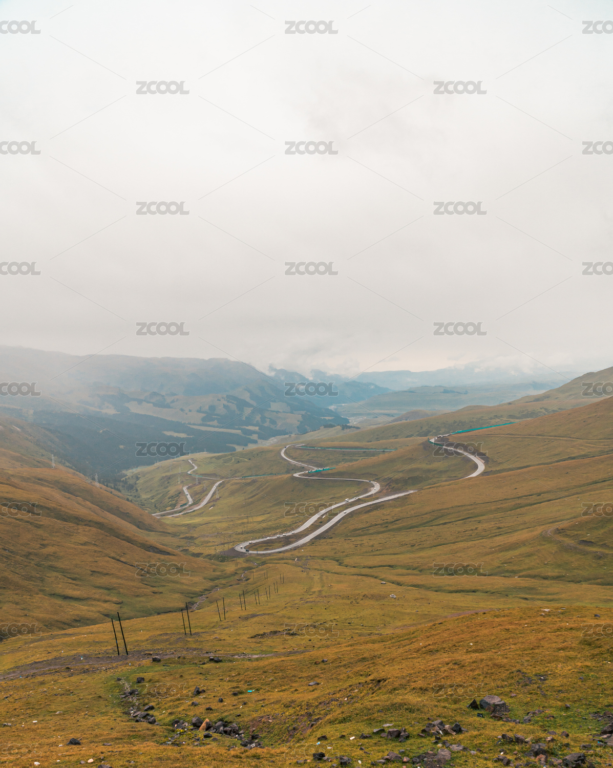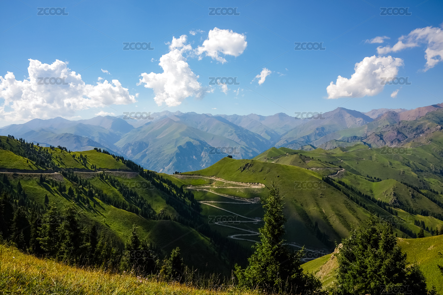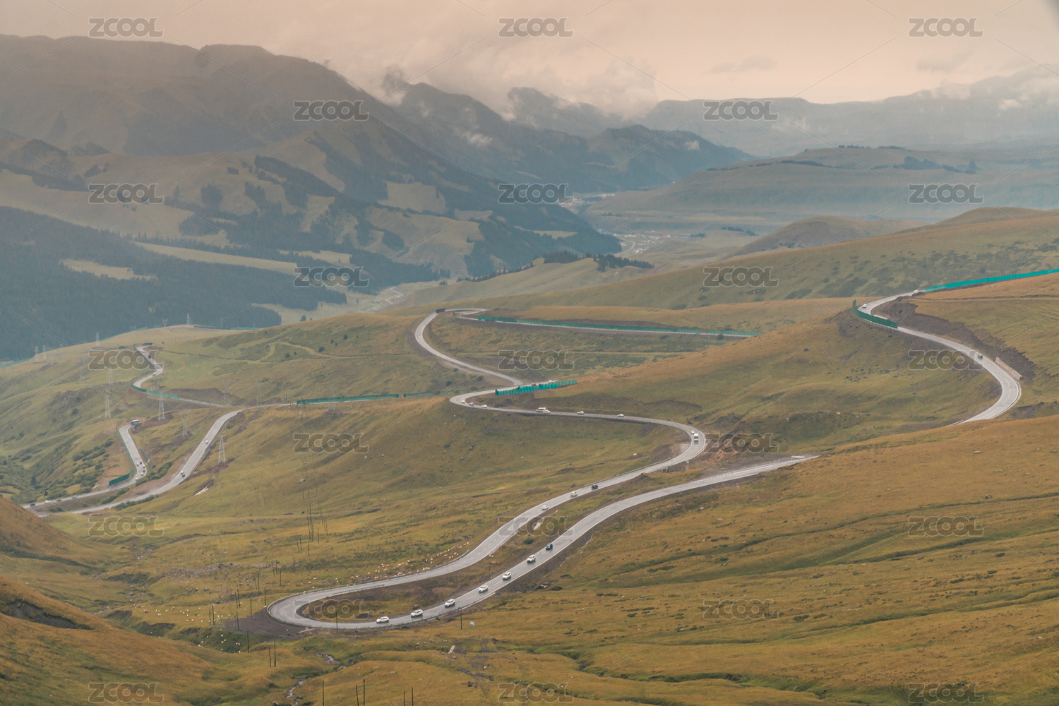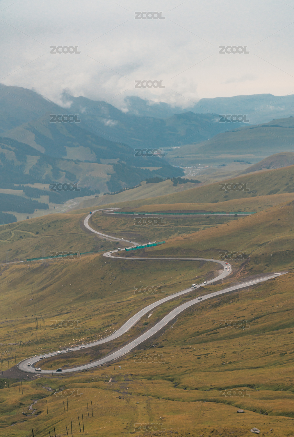 中國(guó)西部新疆伊犁草原盤(pán)山路風(fēng)光