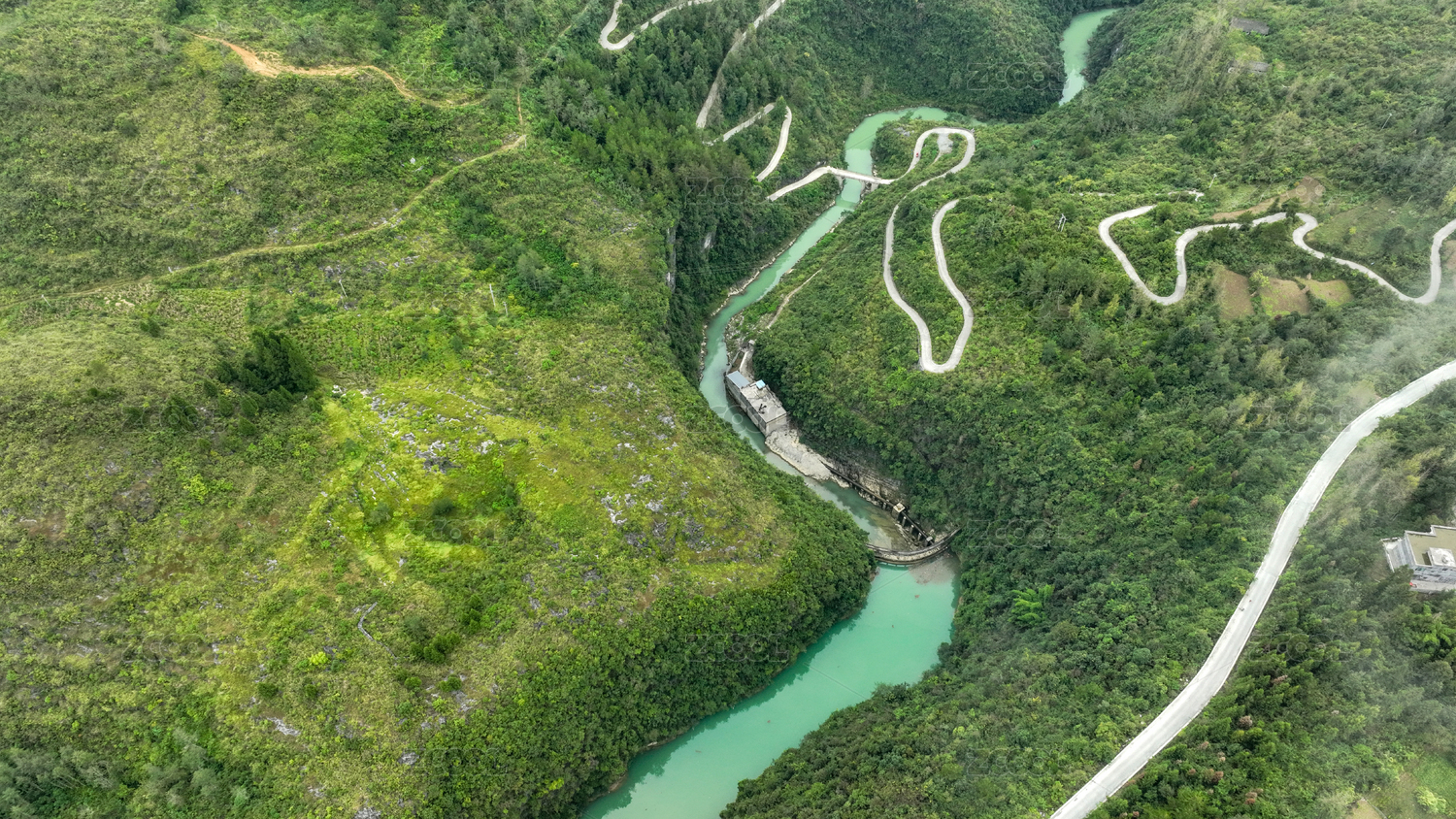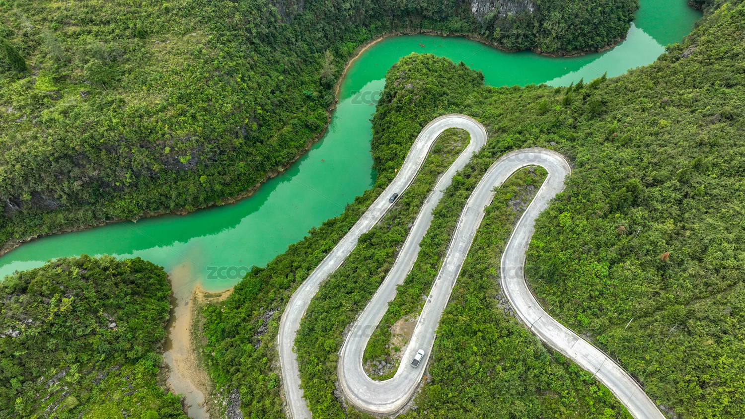 俯瞰急轉(zhuǎn)彎盤(pán)山路