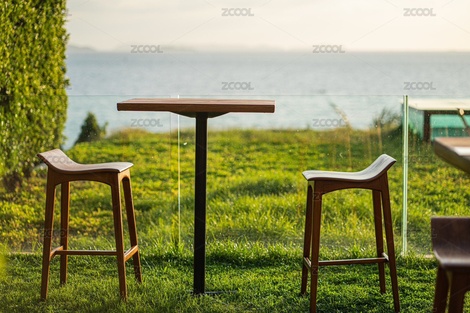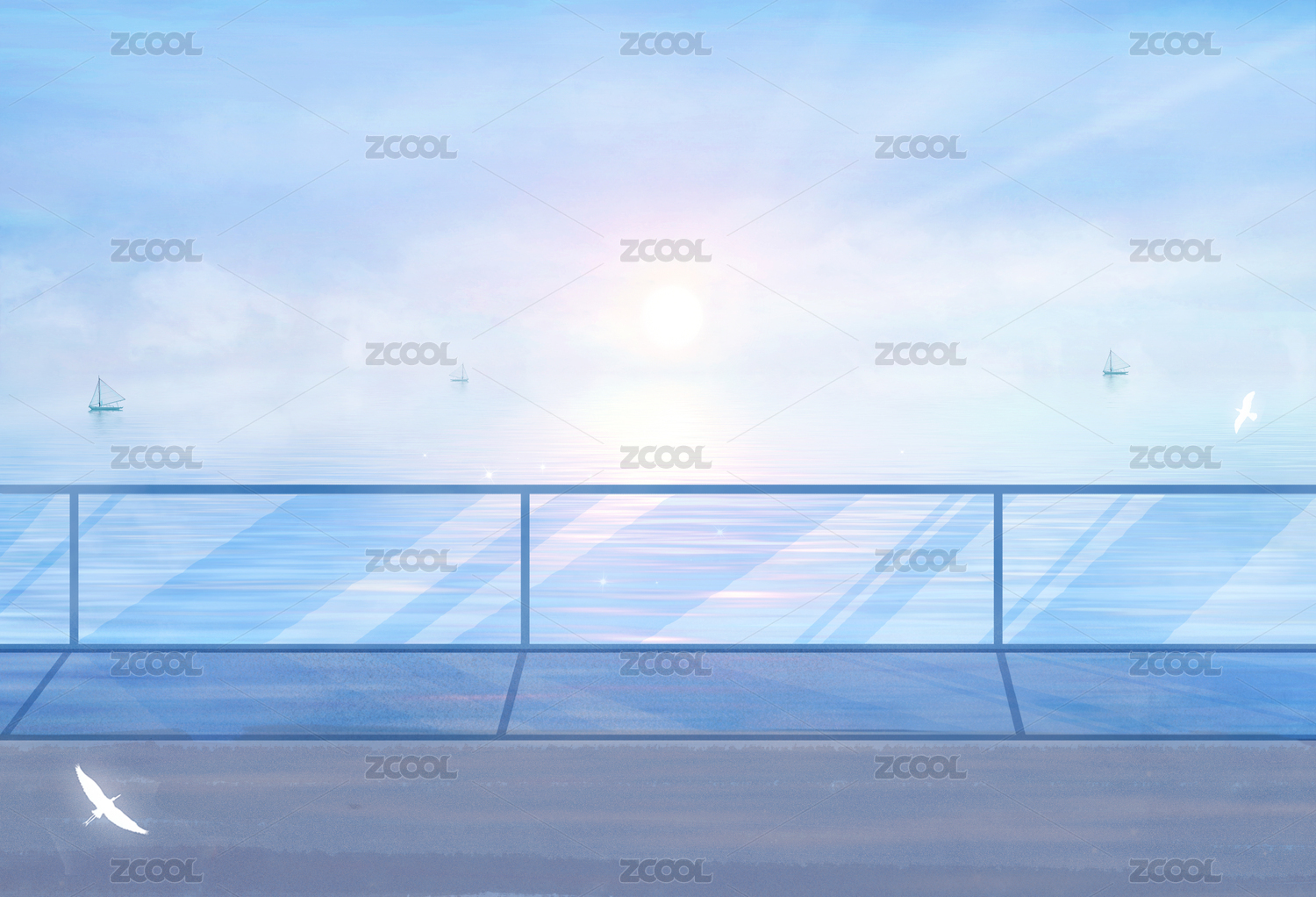 早晨太陽(yáng)升起照在觀海長(zhǎng)廊海平面上插畫(huà)背景