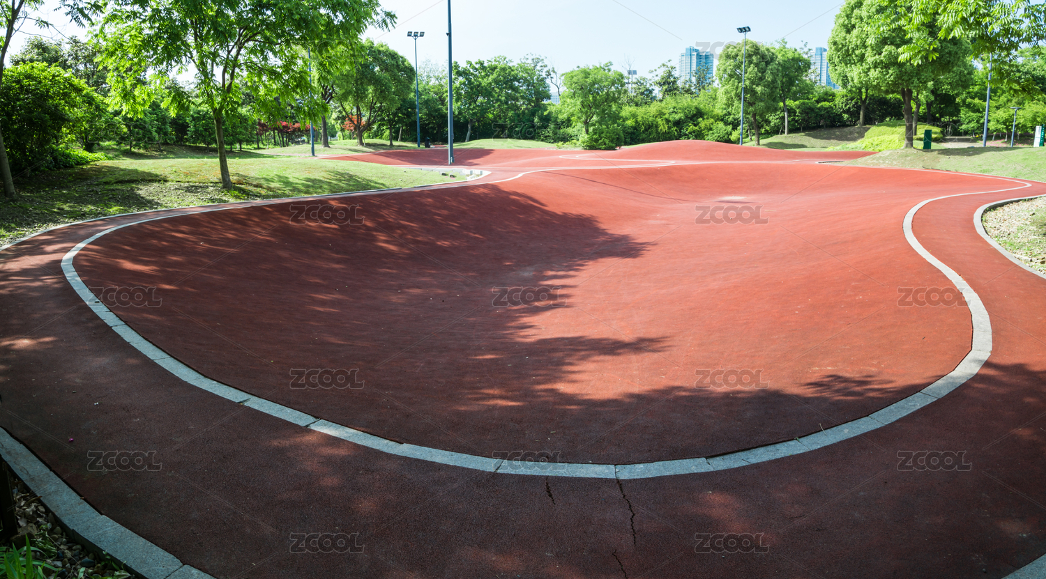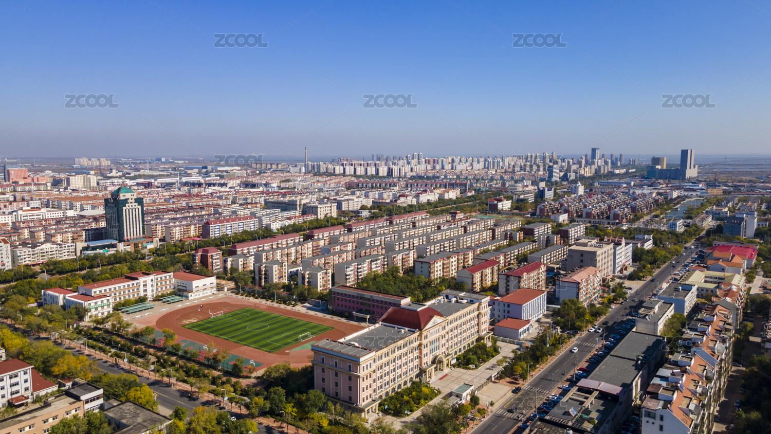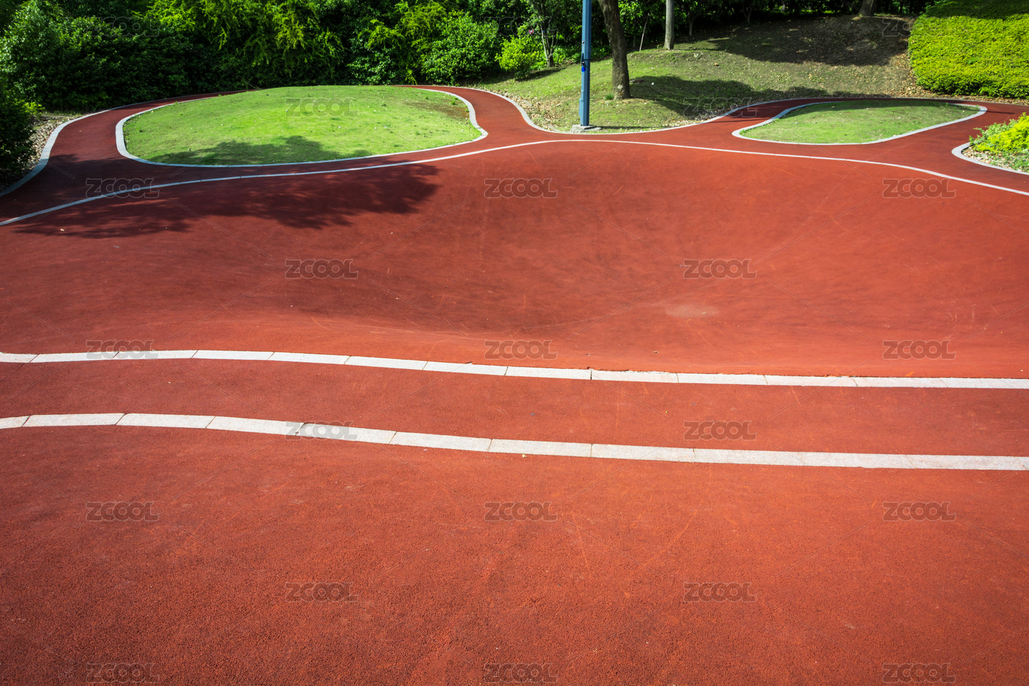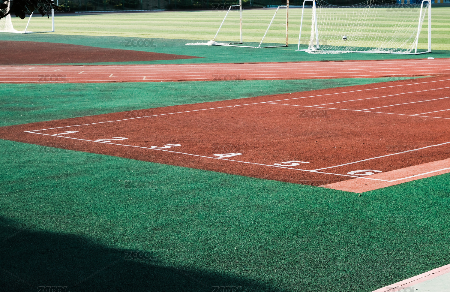 晴朗天氣下操場內(nèi)的塑膠跑道與足球場