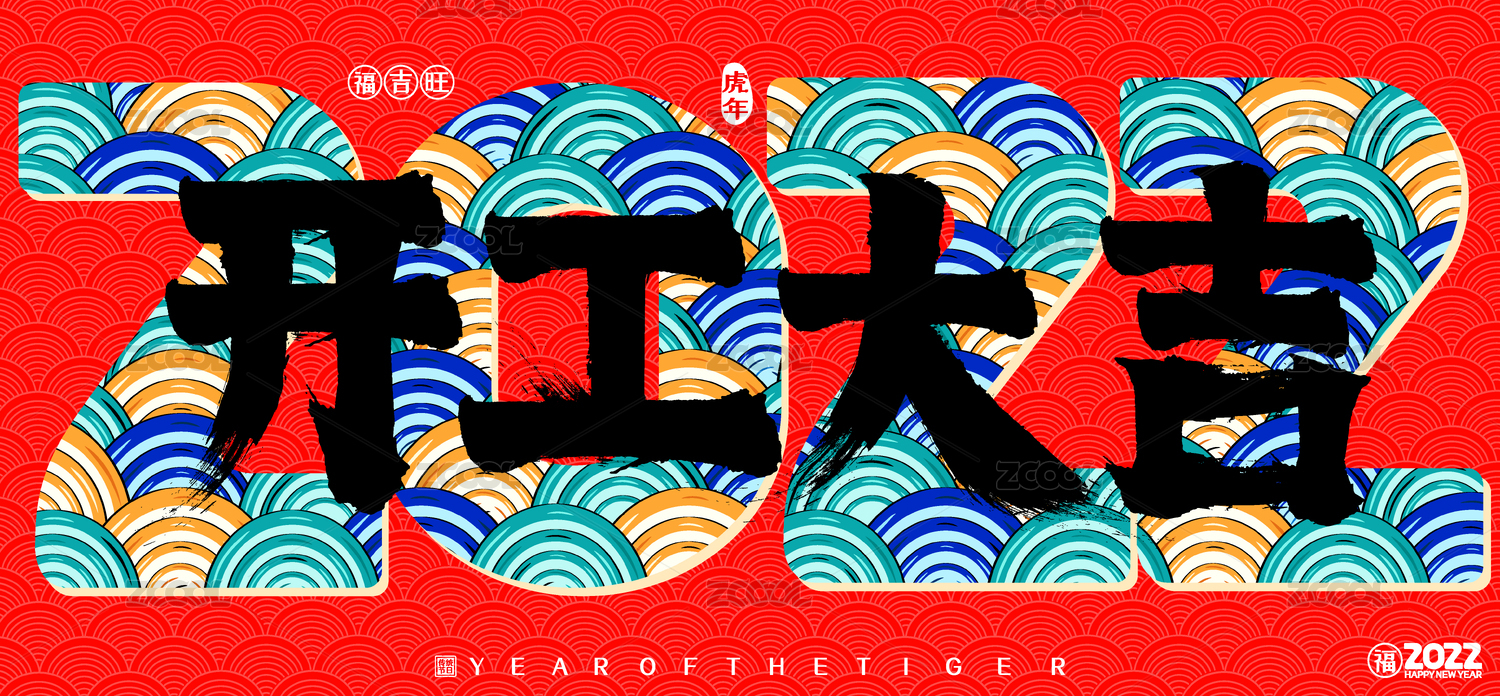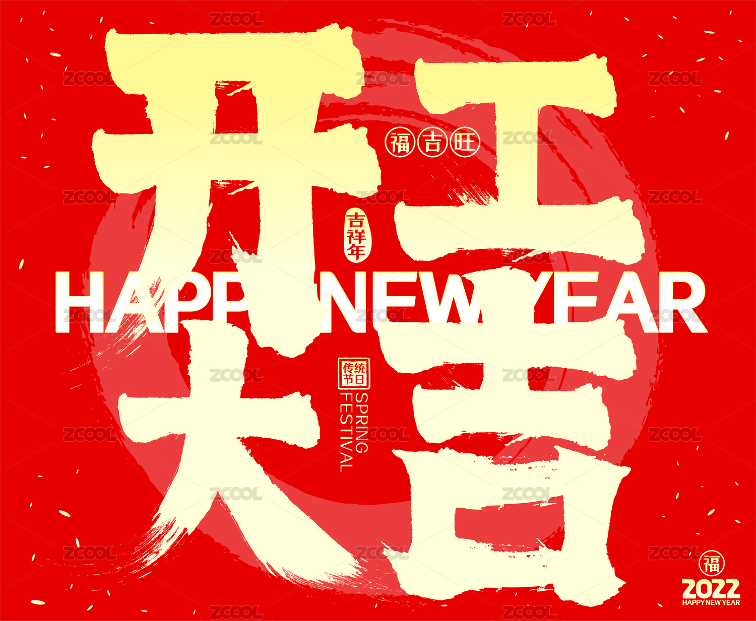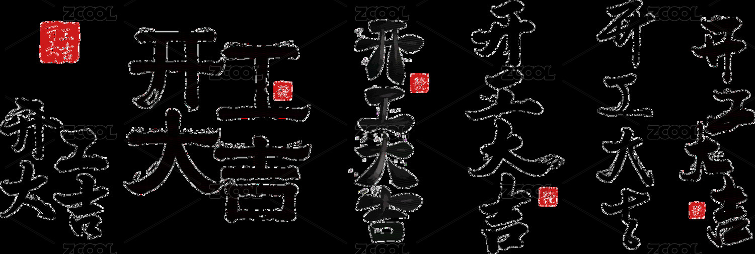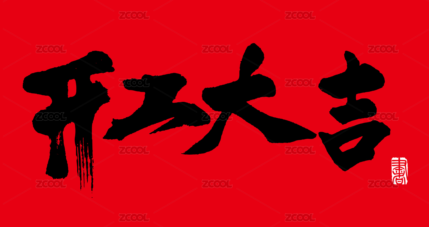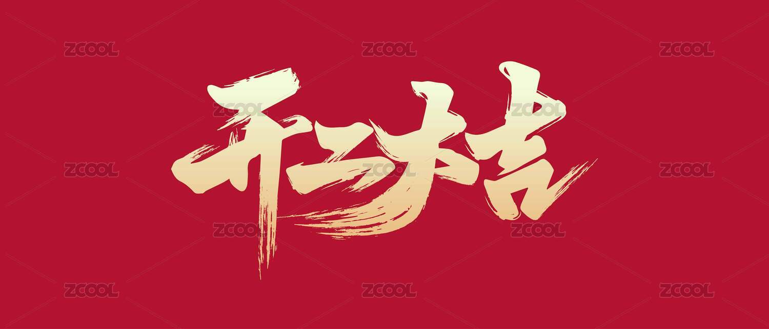 開工大吉,新年中國風(fēng)毛筆書法矢量字體