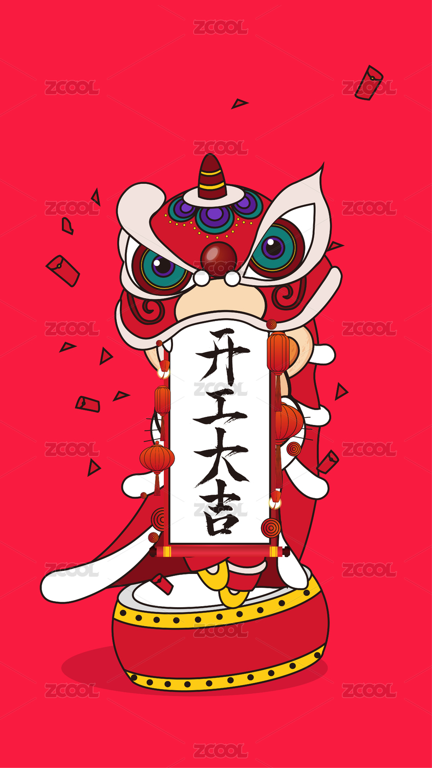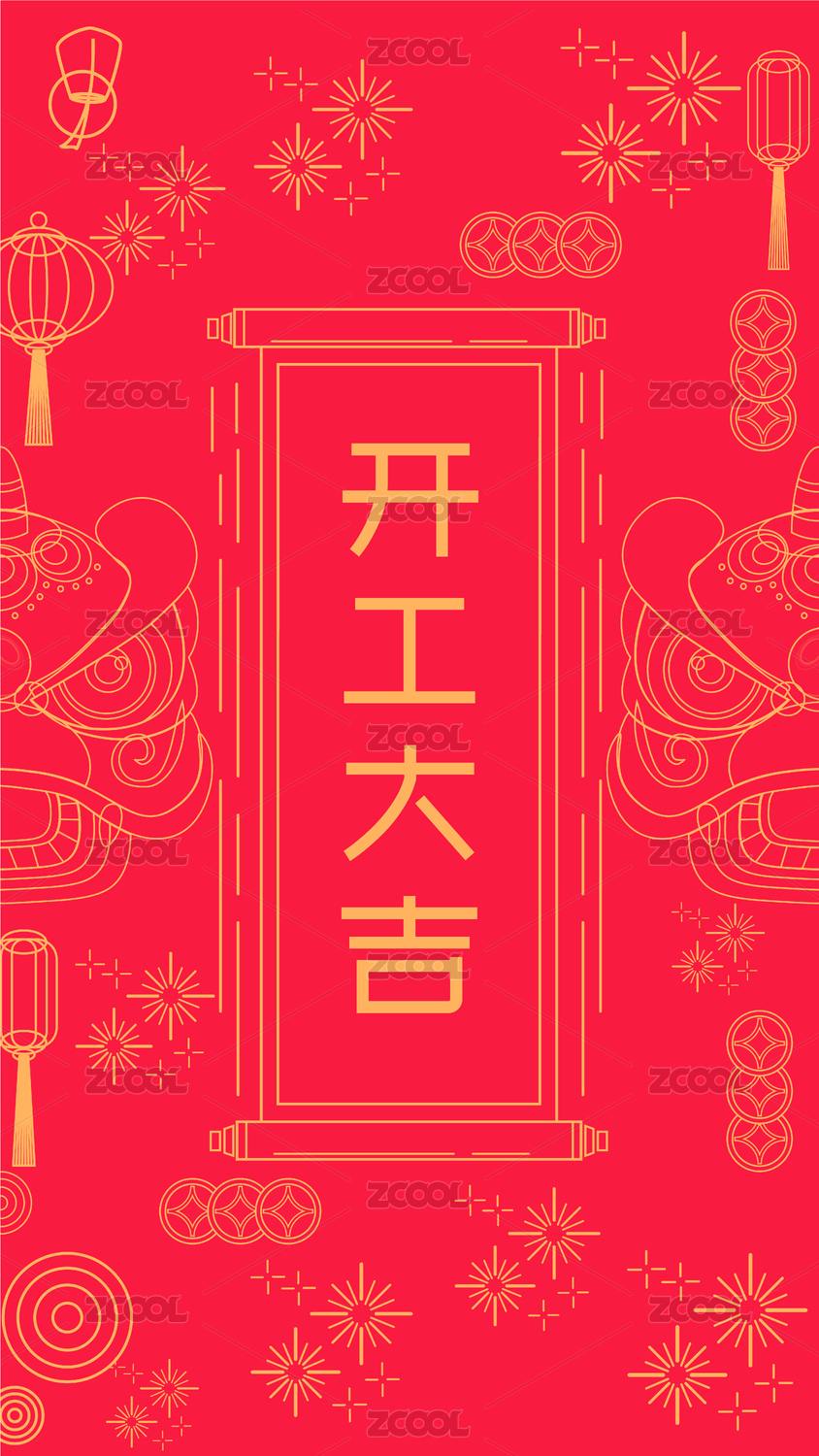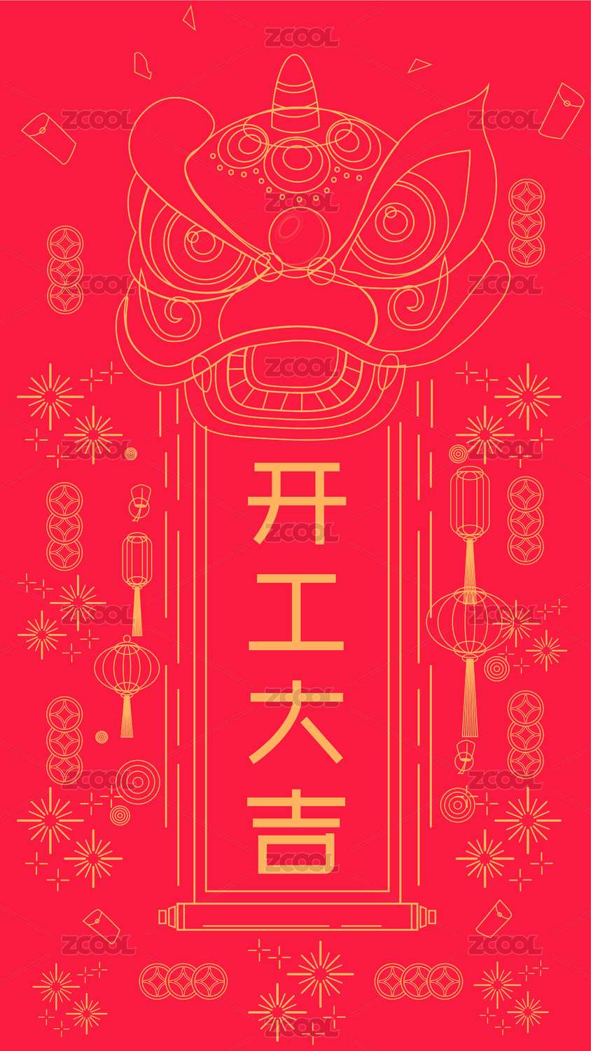 矢量燙金舞獅開工大吉橫版海報(bào)