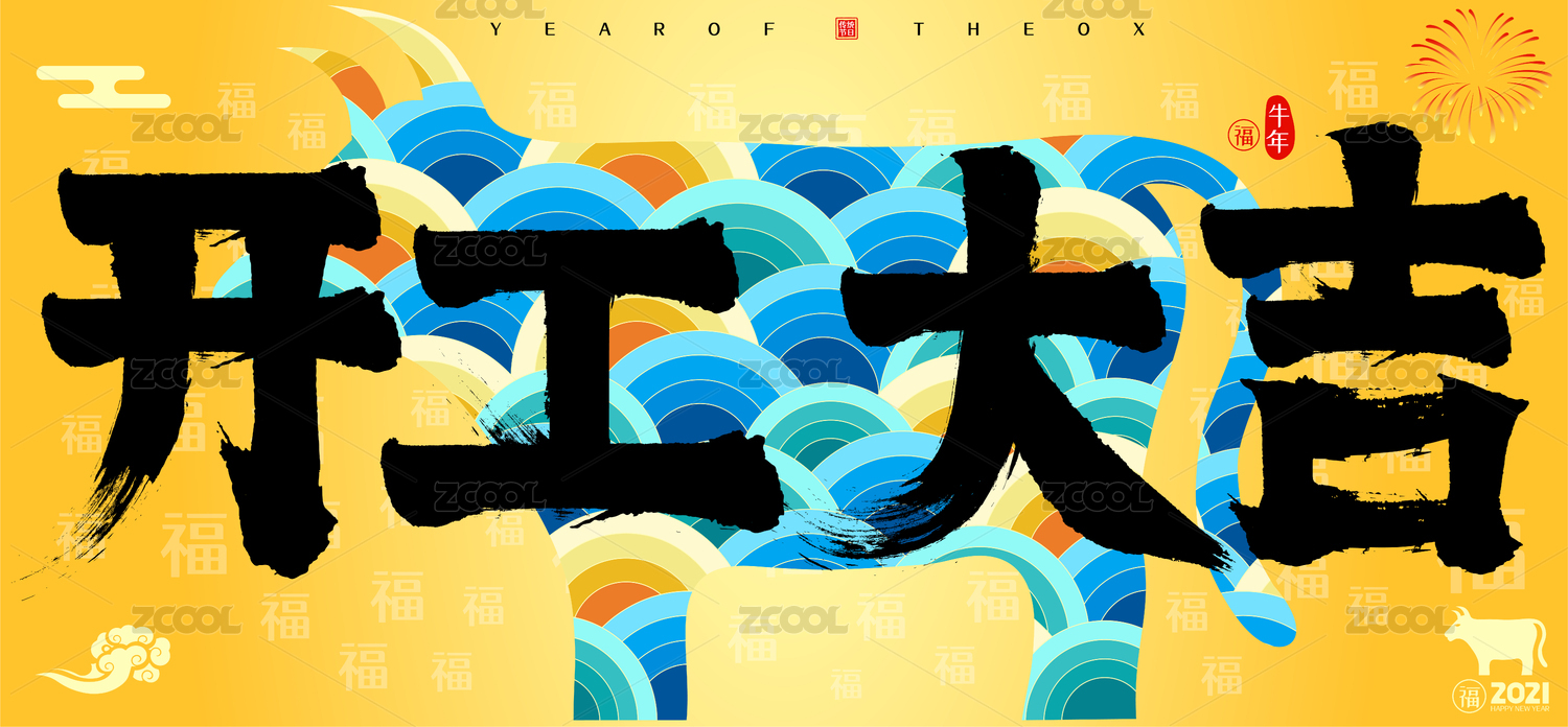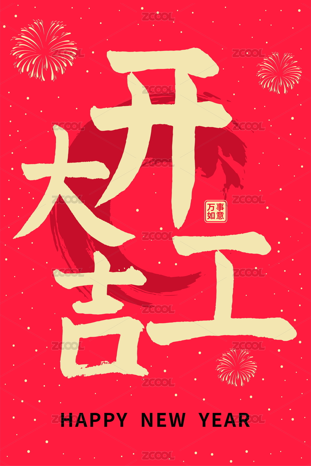 開工大吉春節(jié)喜慶水墨中國風(fēng)矢量書法字