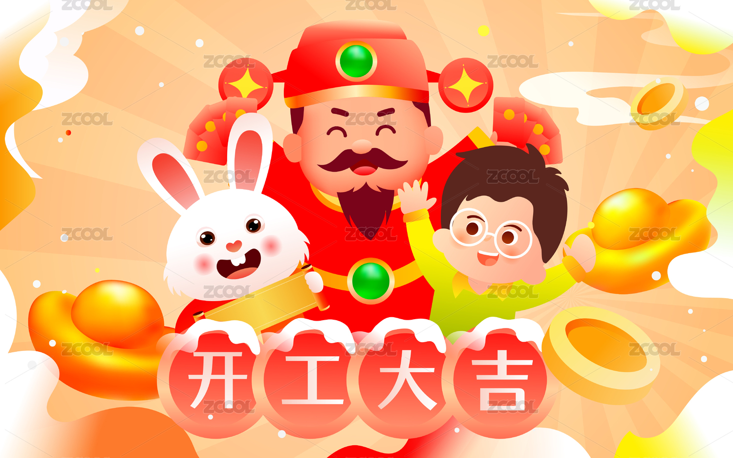 春節(jié)財(cái)神爺送財(cái)富新年開工大吉傳統(tǒng)節(jié)日插畫