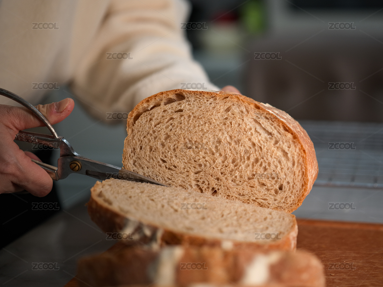 用剪刀切面包