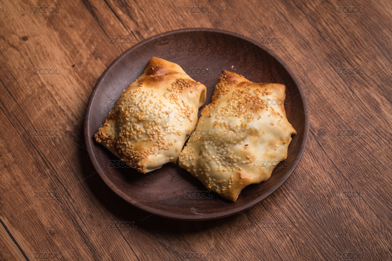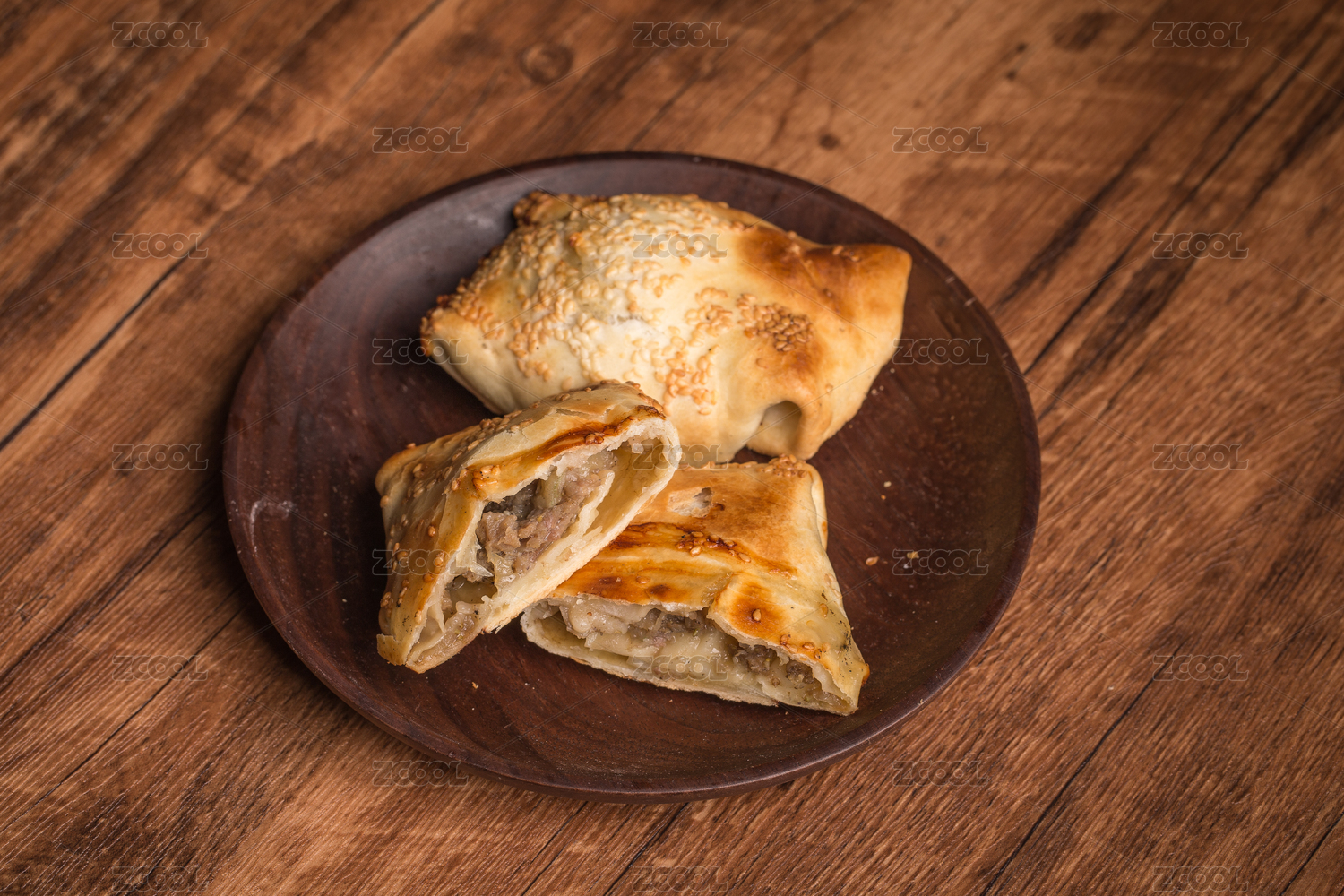 桌子上的一盤新疆維吾爾族傳統(tǒng)美食烤包子