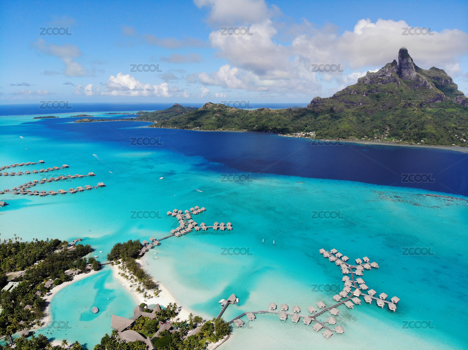 法屬波利尼西亞大溪地波拉波拉海島的航拍