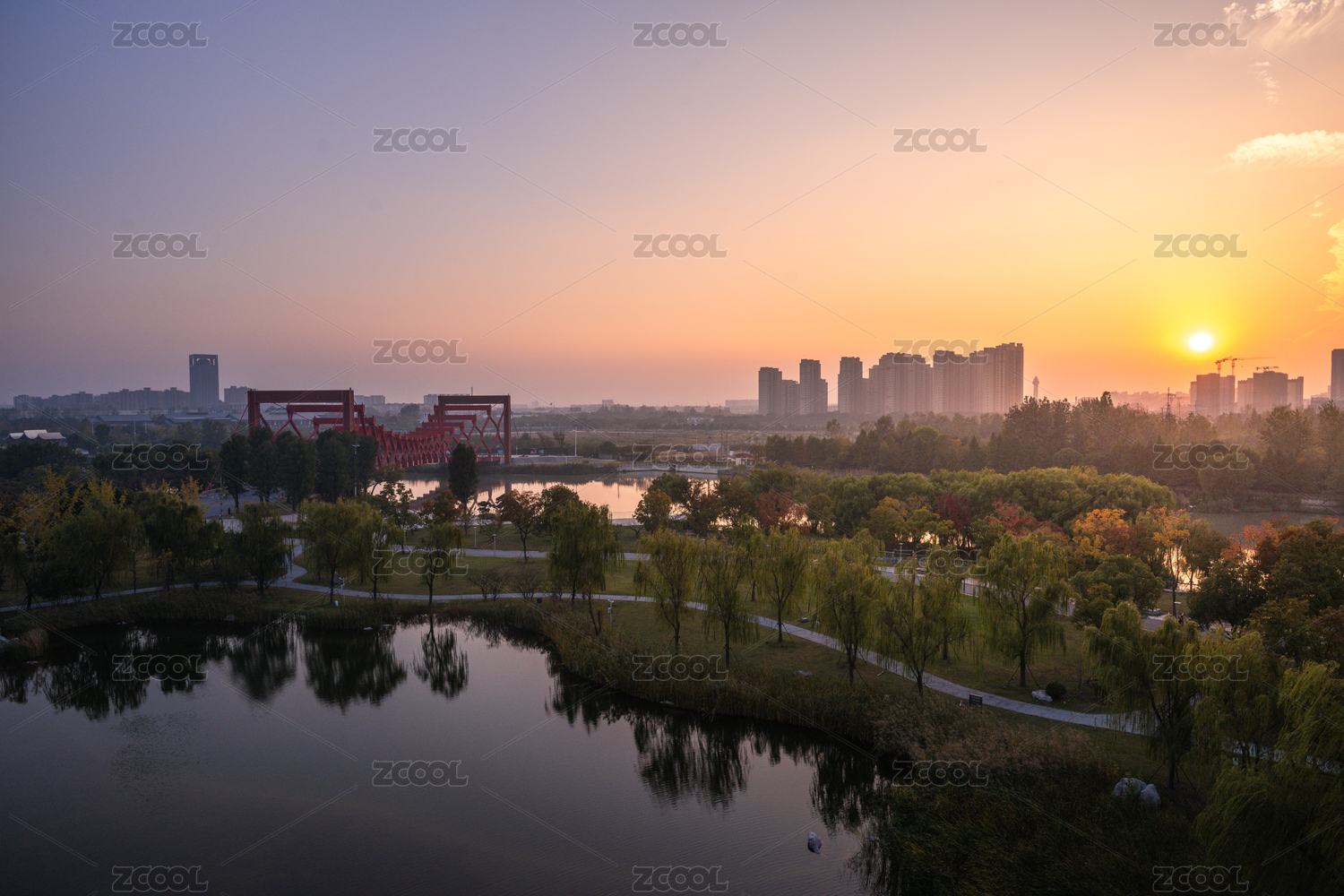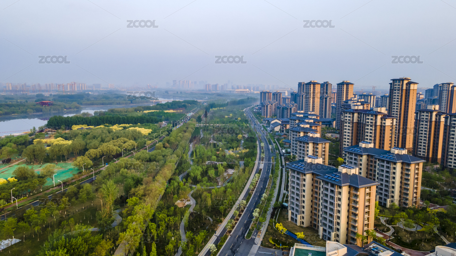 中國(guó)北京通州區(qū)大運(yùn)河周邊建筑風(fēng)光航拍圖