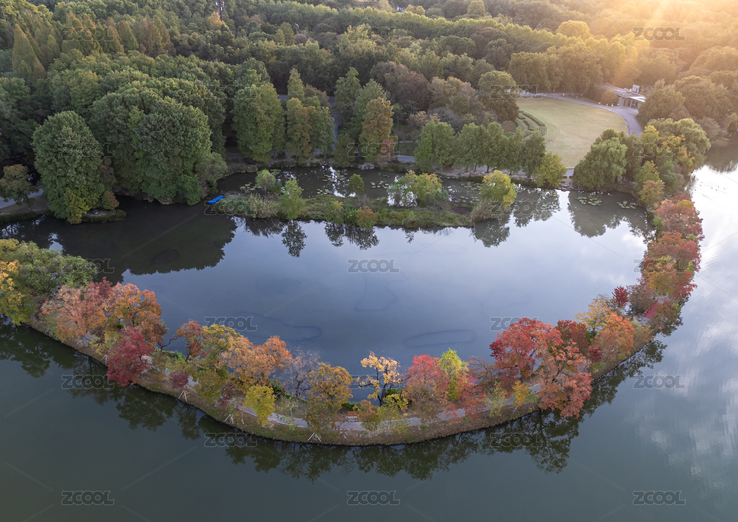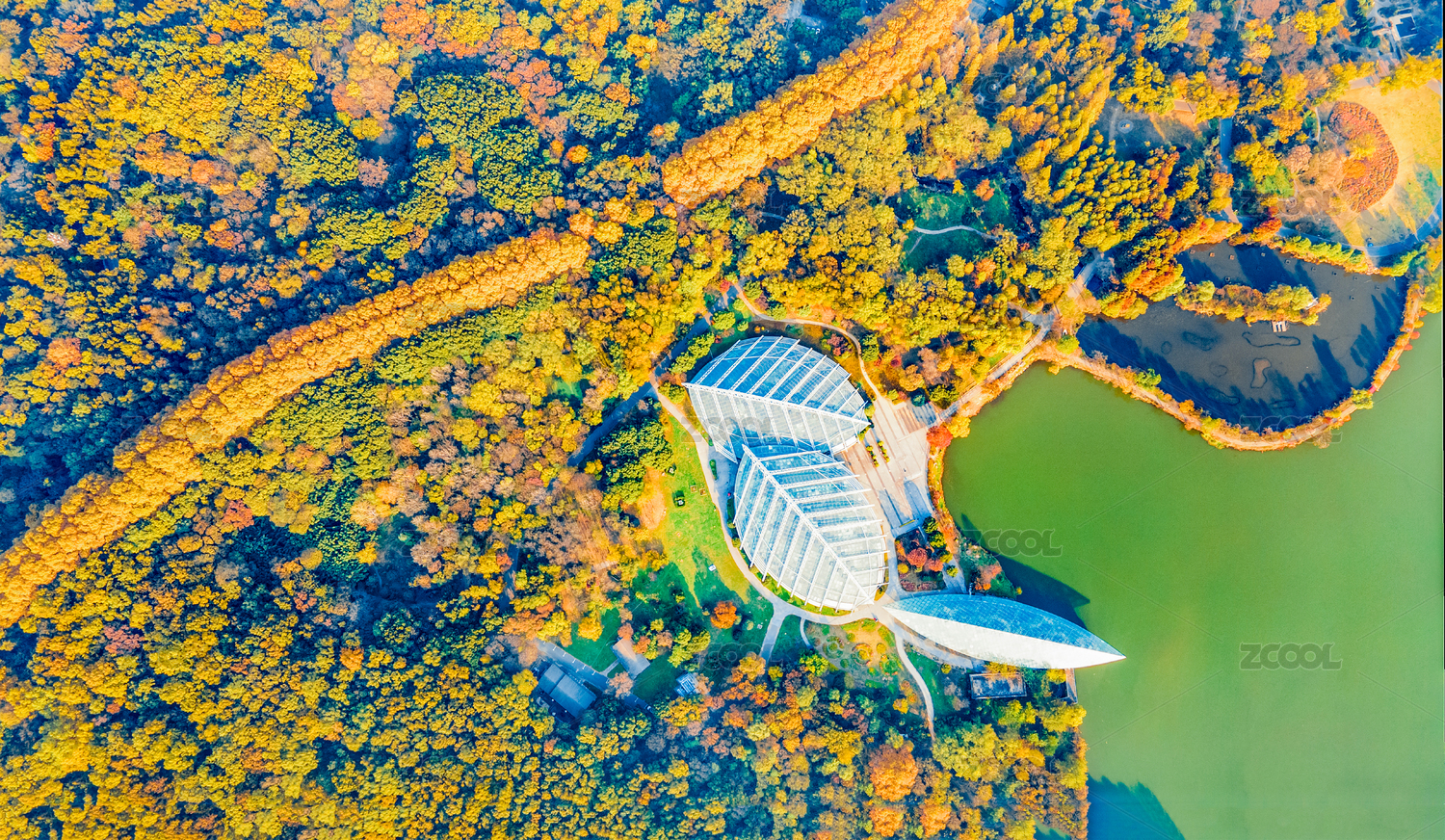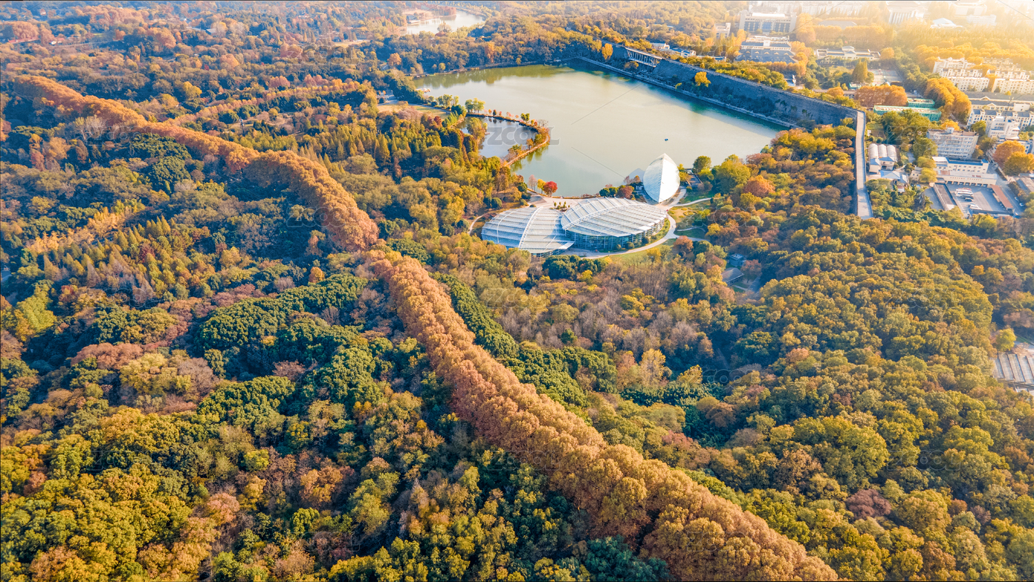航拍秋天的中國江蘇省南京中山植物園與前湖