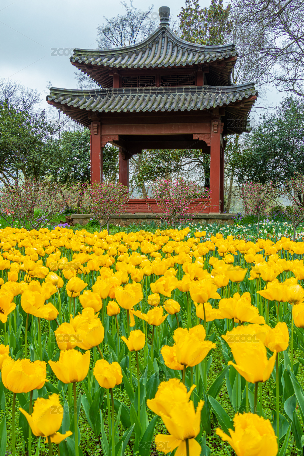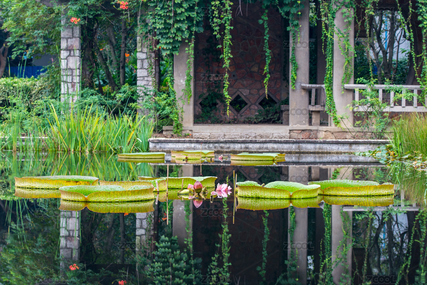 航拍南京中山植物園溫室館上空的風(fēng)光