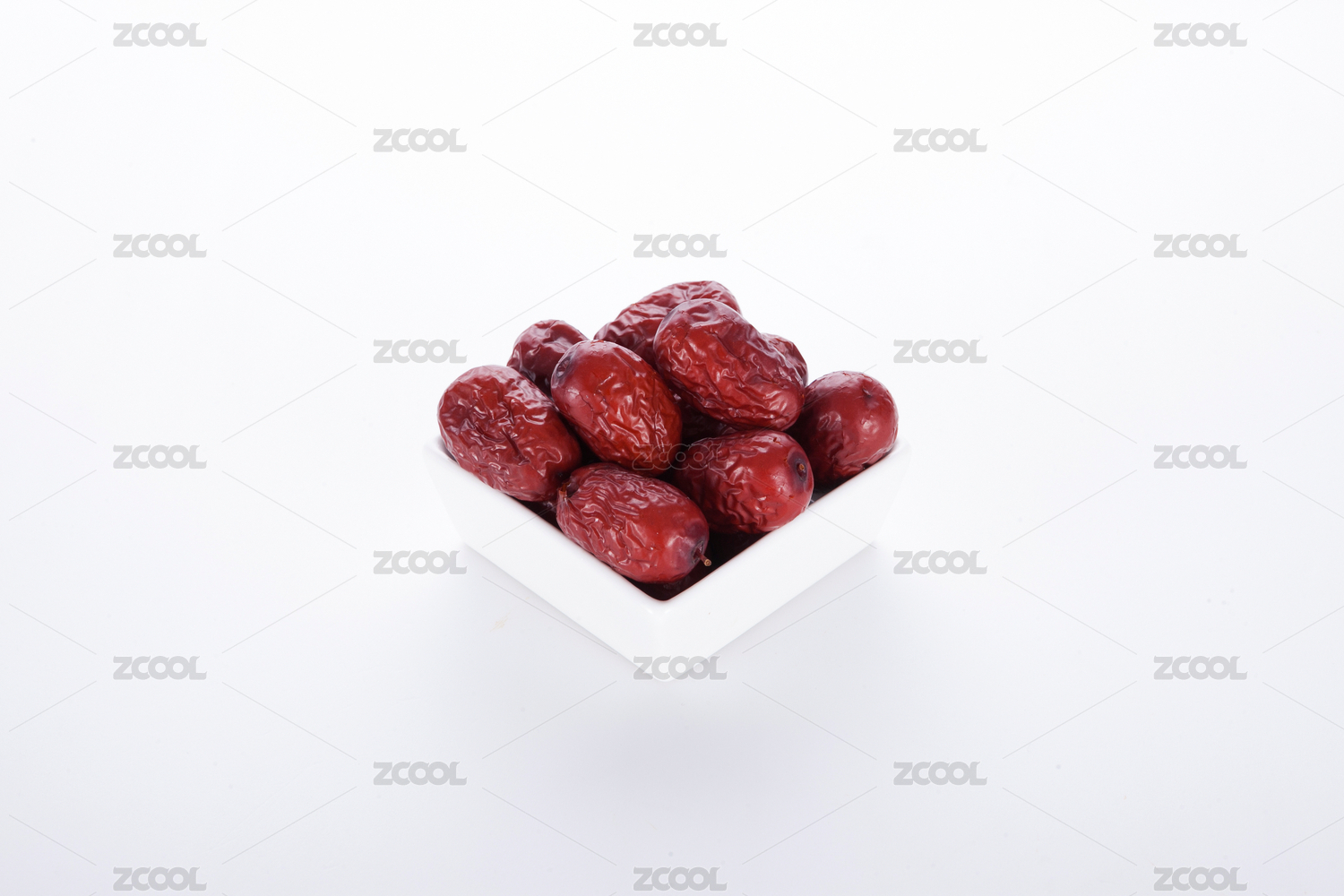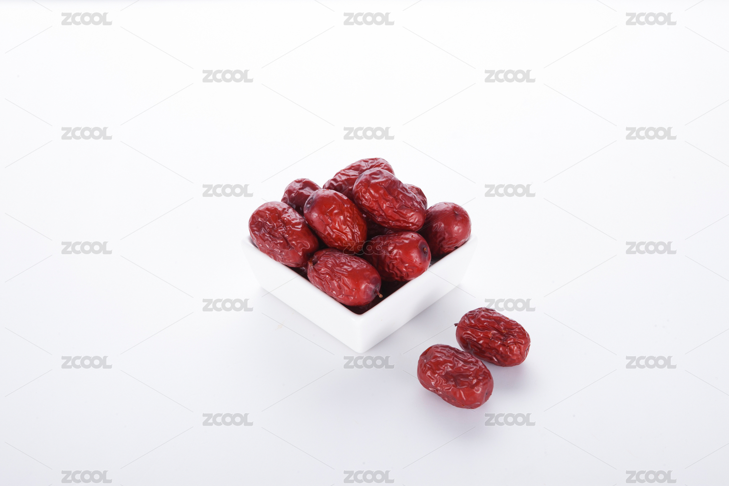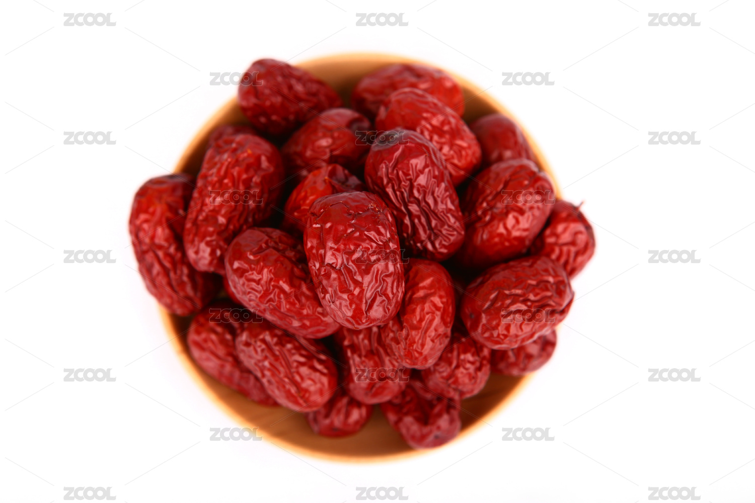 碗里的新鮮紅棗干白底俯視