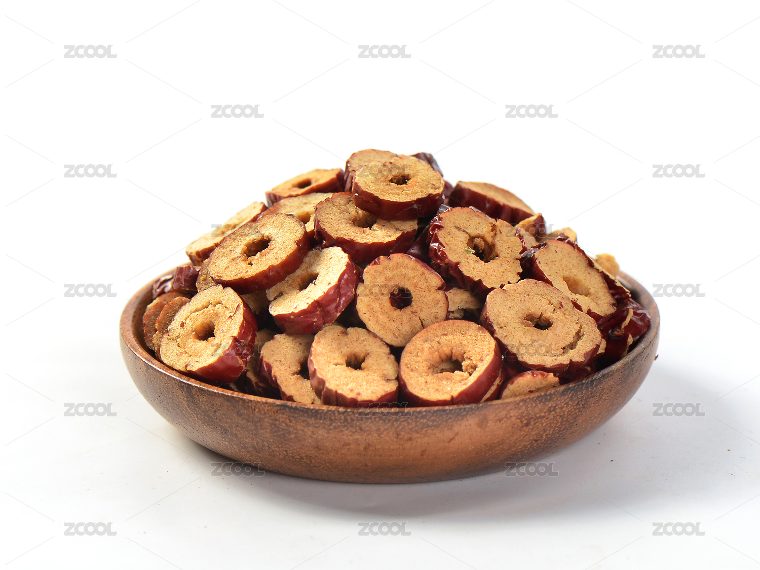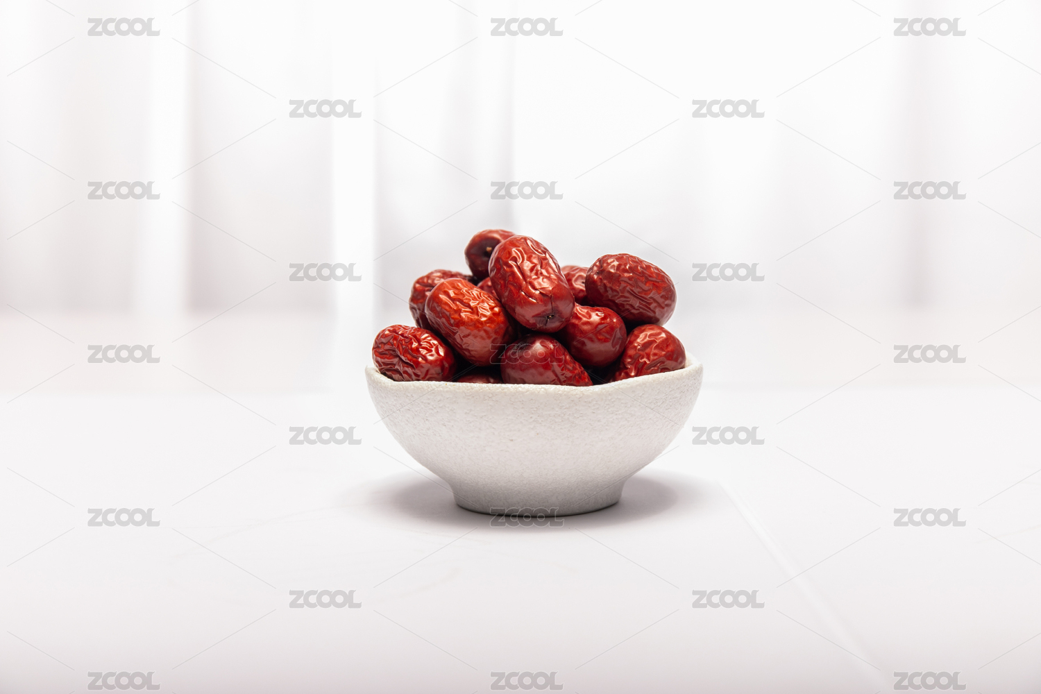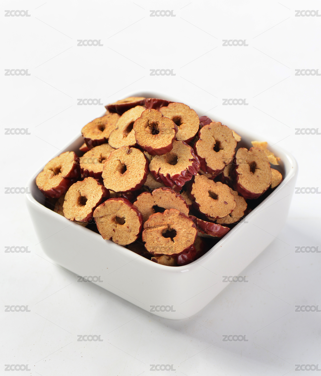 碗里的新鮮紅棗干白底俯視