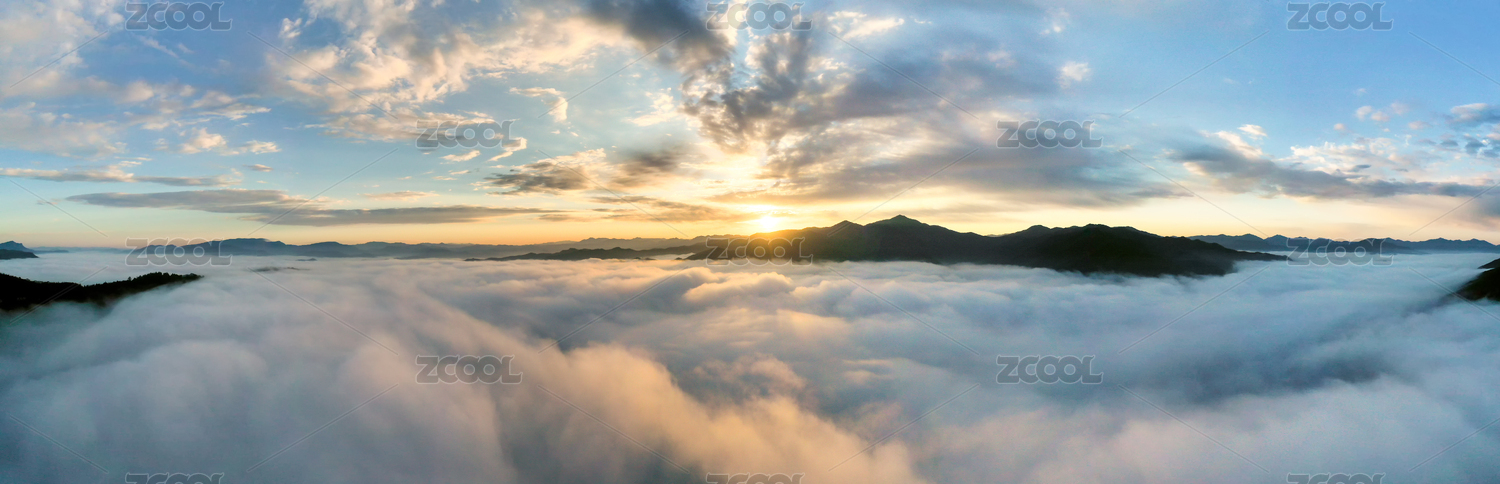 日出時(shí)分云霧之中山峰云海