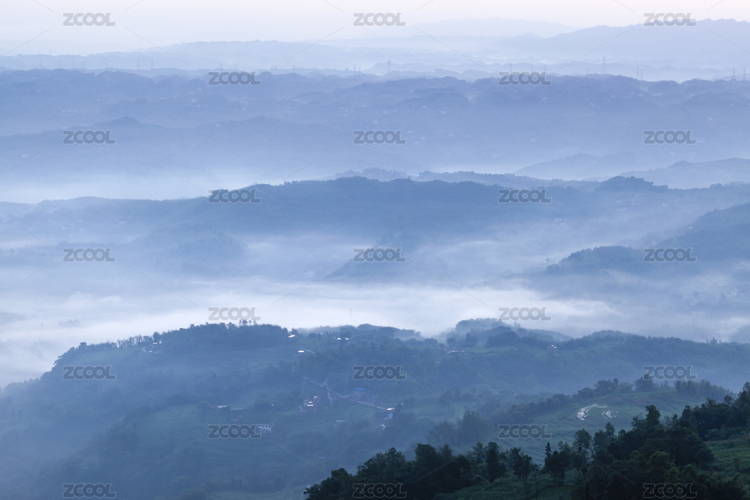 四川宜賓橫江古鎮(zhèn)清晨云霧繚繞的山脈