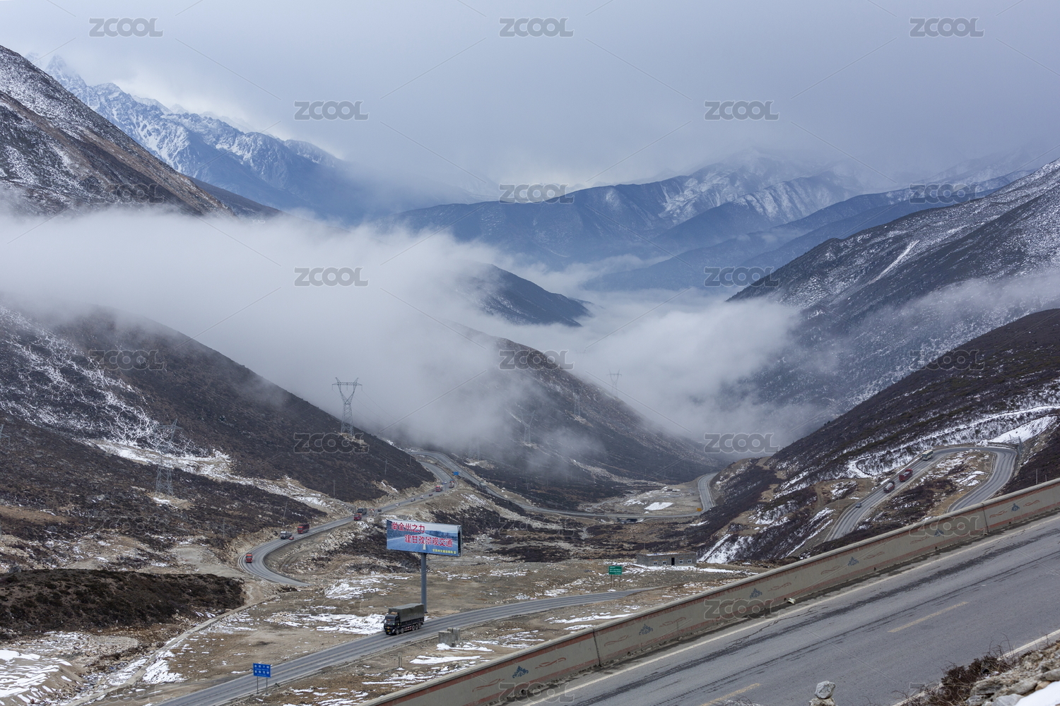 中國四川甘孜州折多山埡口云霧雪山風(fēng)景