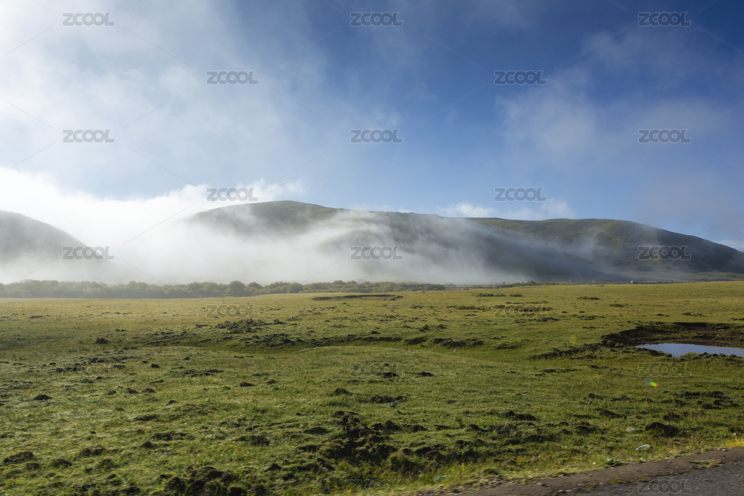 中國四川阿壩若爾蓋草原云霧繚繞山巒草原自然景觀