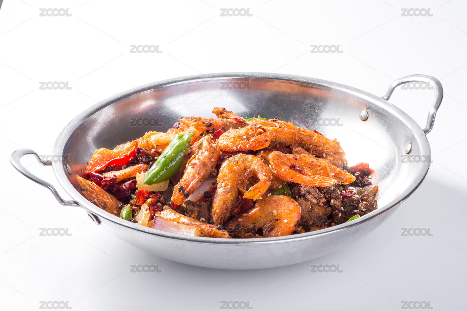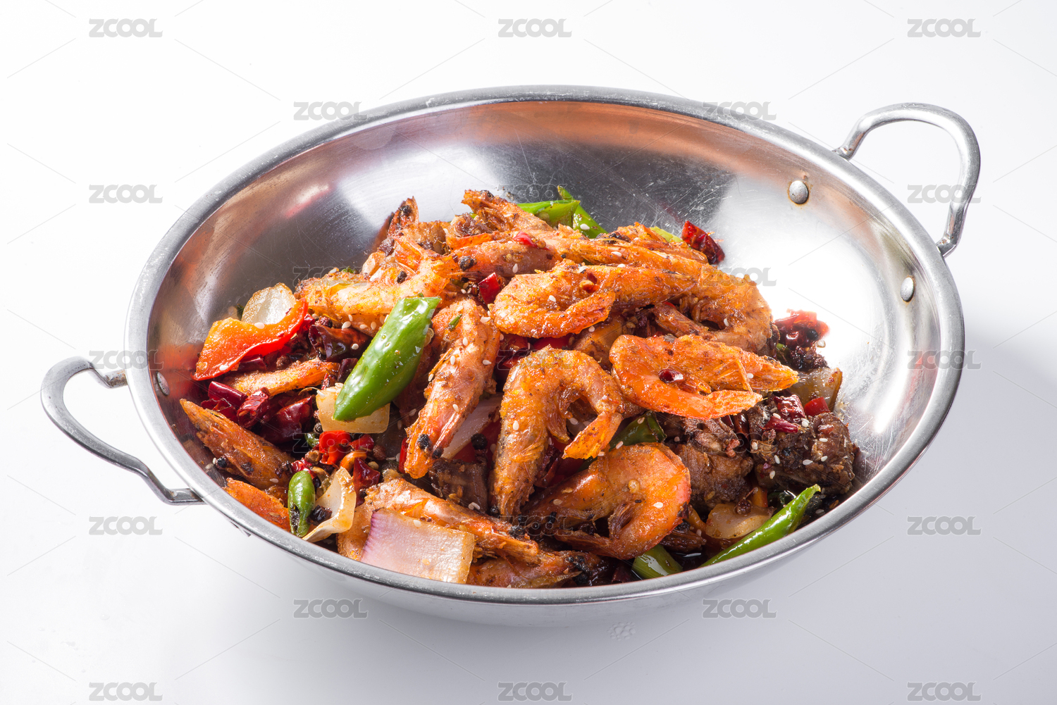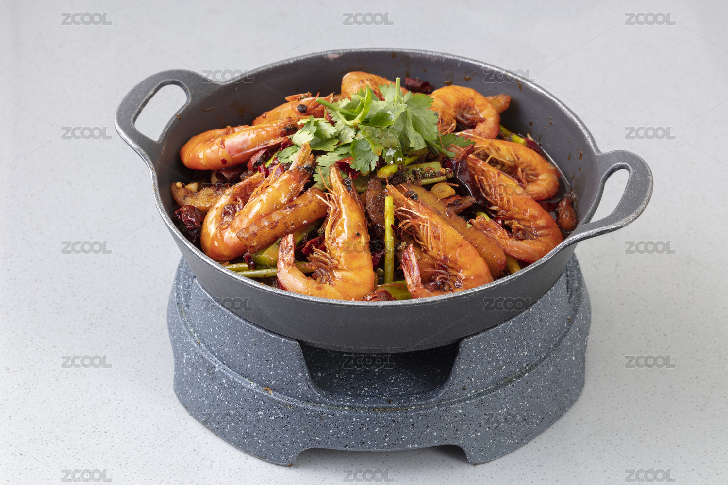 雙耳鍋里的干鍋蝦香辣蝦