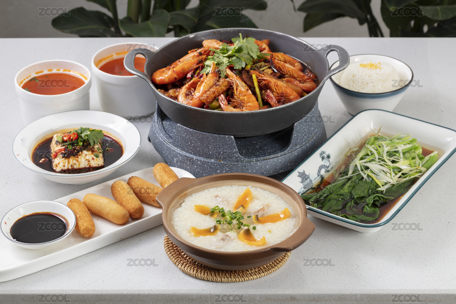 桌子上的美食中餐食物干鍋蝦套餐