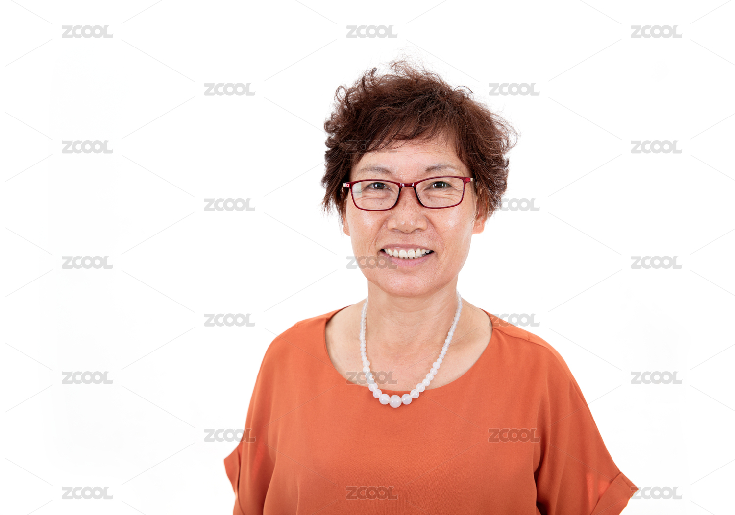 白背景前滿面笑容的東方中年婦女