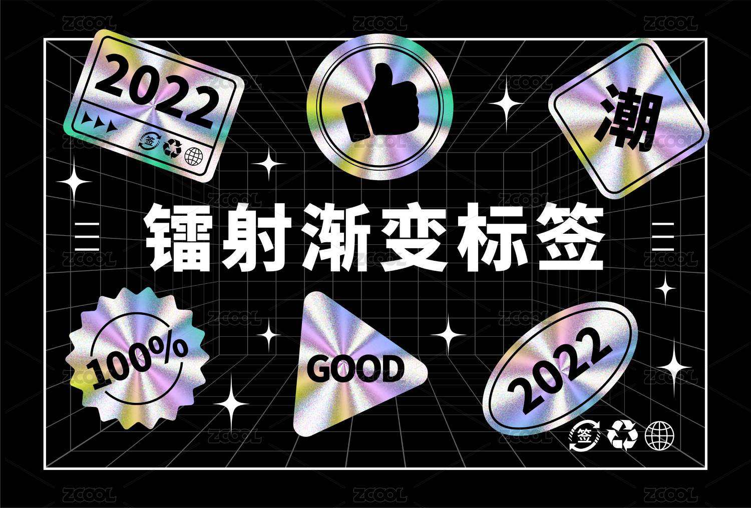 炫酷酸性鐳射漸變標(biāo)簽矢量圖
