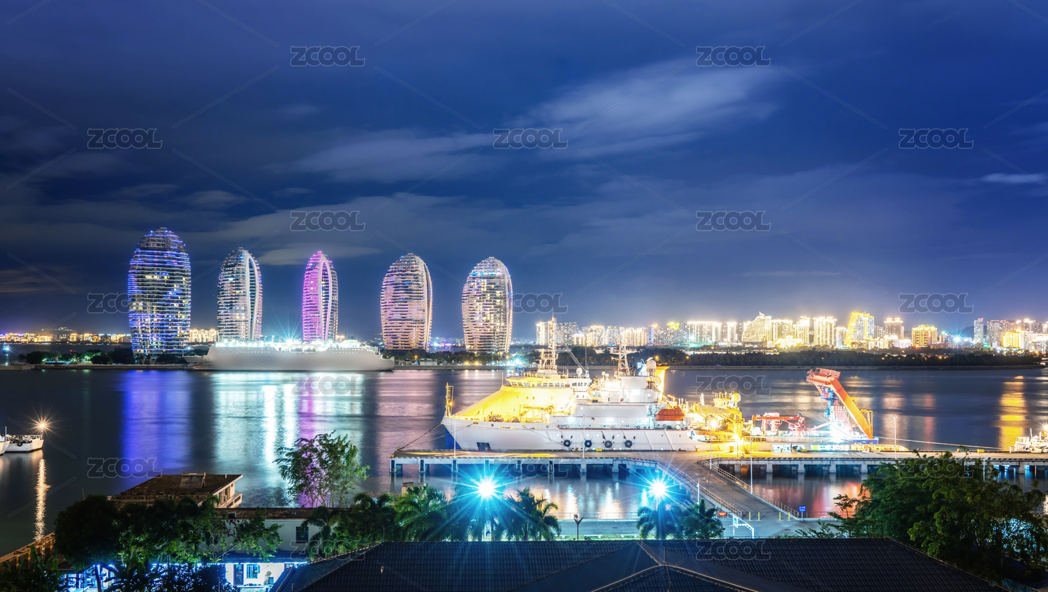 中國(guó)海南三亞灣建筑景觀夜景航拍