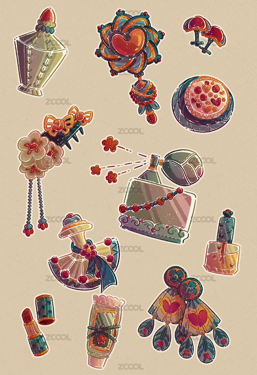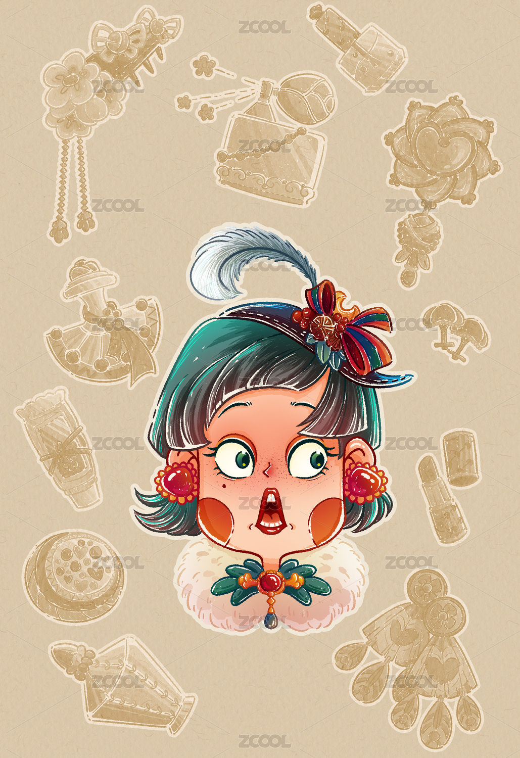 復(fù)古風(fēng)格插畫(huà)之彩妝首飾合集