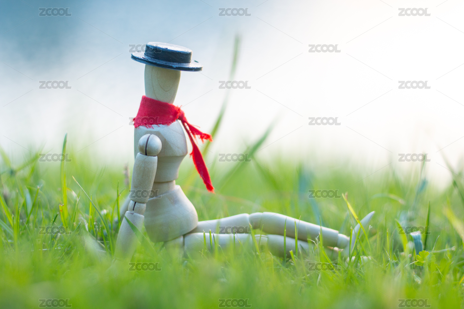 坐在草地上的木頭人