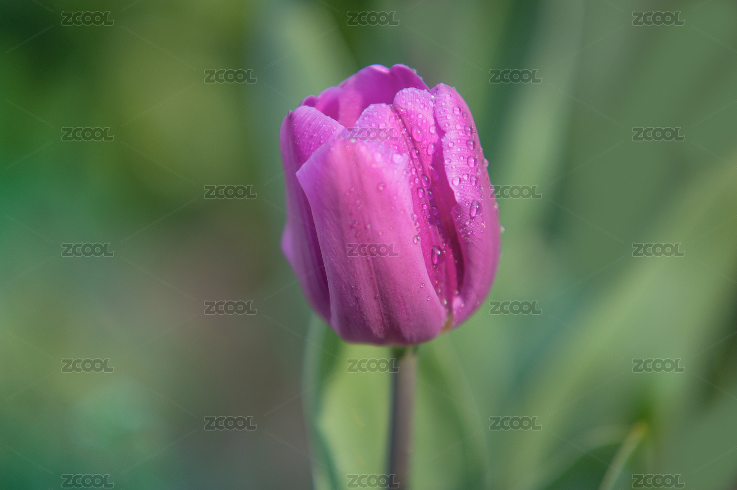 一支紫色郁金香,綠色背景虛化大光圈拍攝