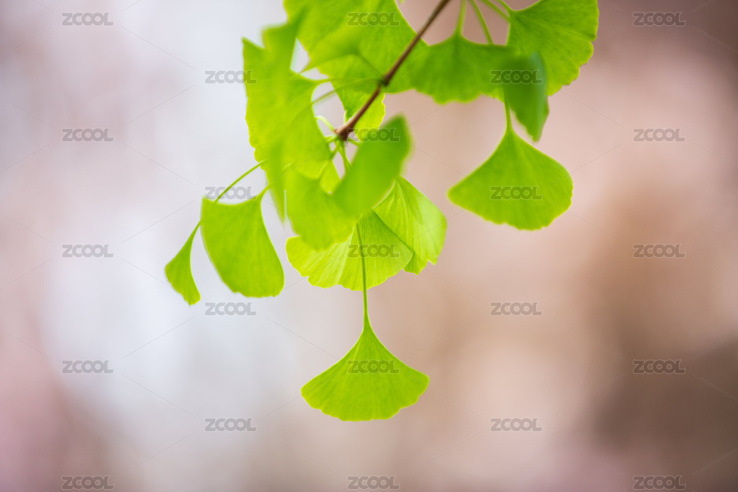 夏季午后銀杏樹葉大光圈虛化特寫