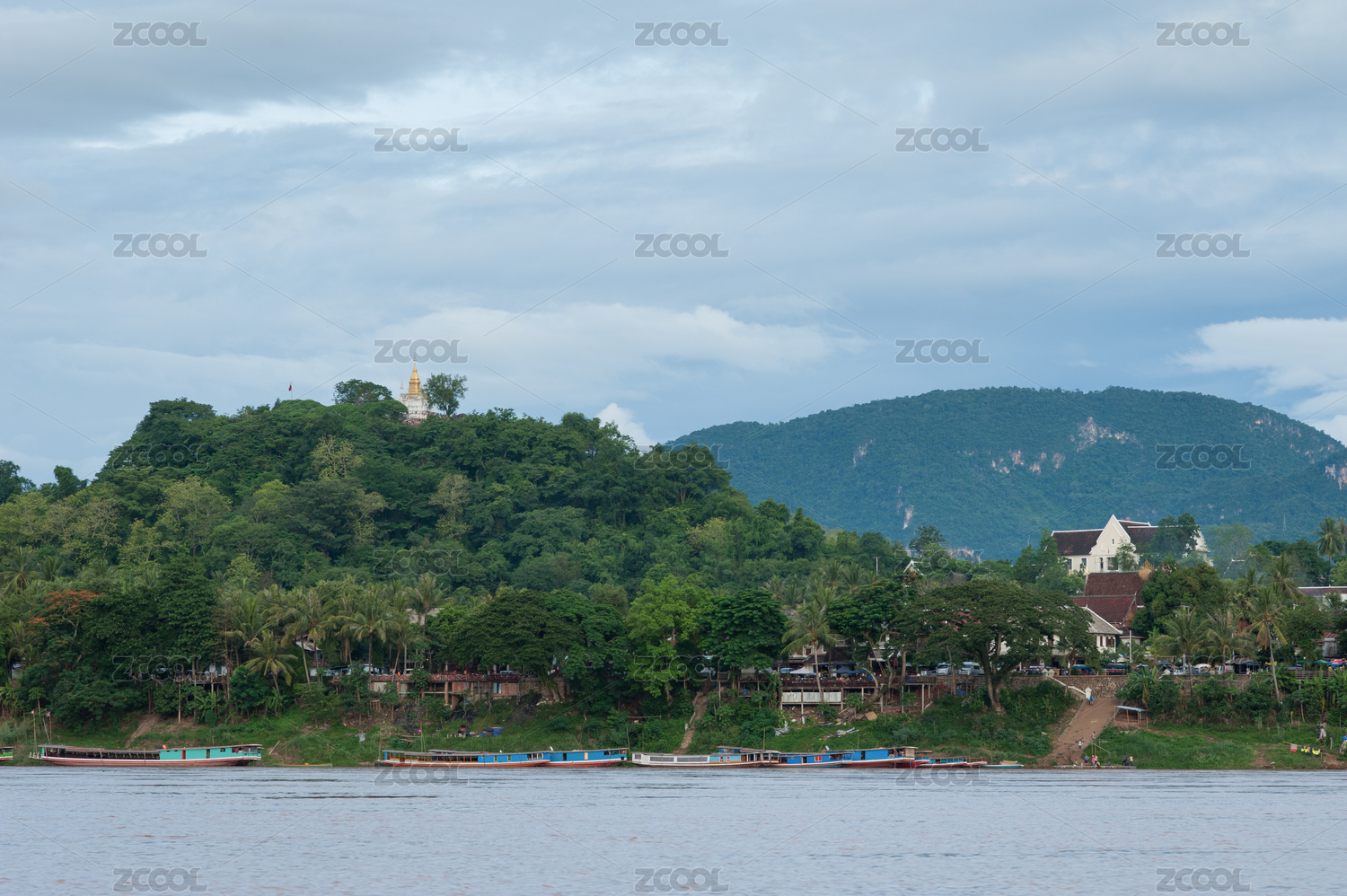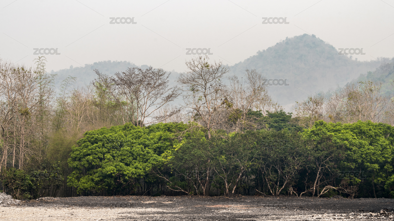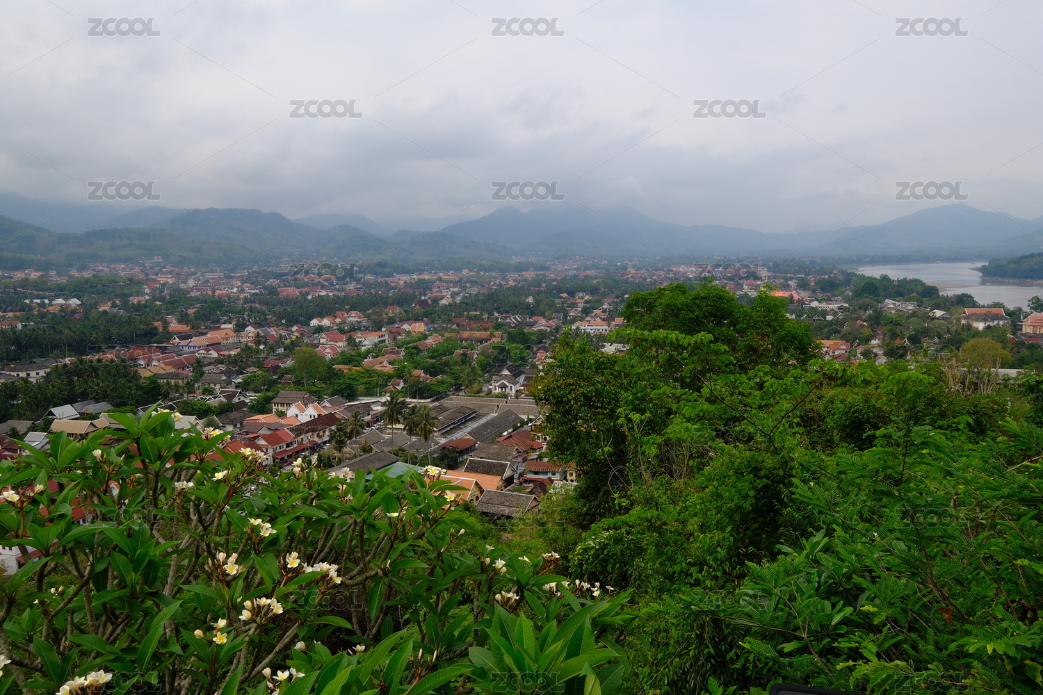 老撾瑯勃拉邦鄉(xiāng)村的遠(yuǎn)山與小樹林