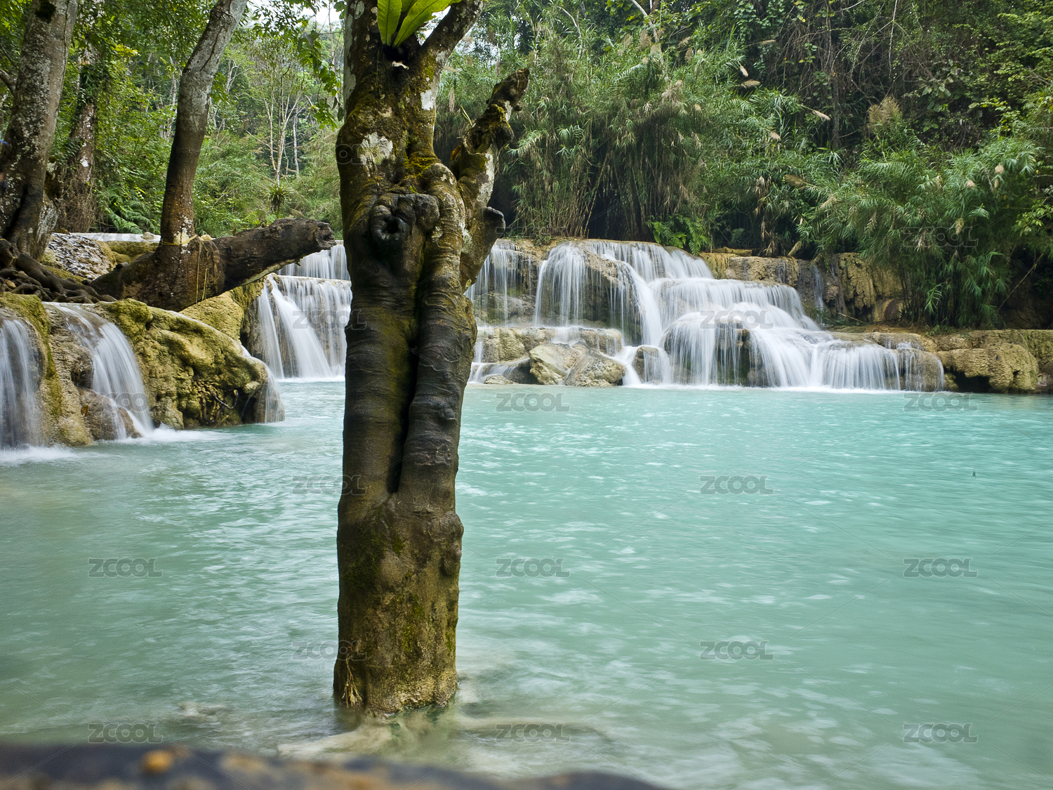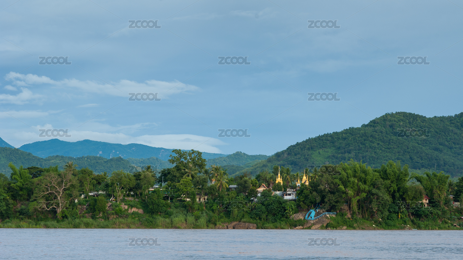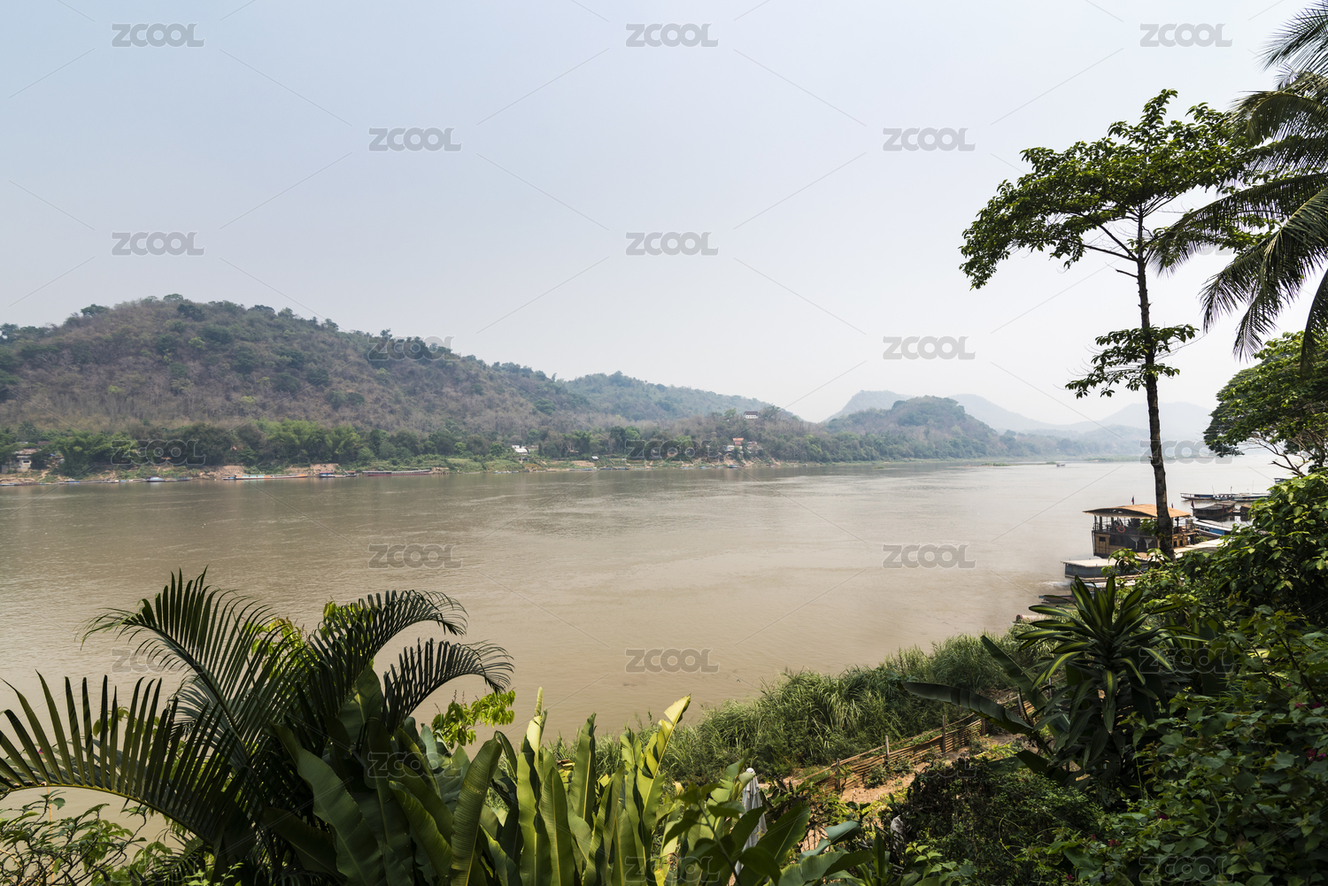 老撾瑯勃拉邦鄉(xiāng)村的遠(yuǎn)山與小樹林