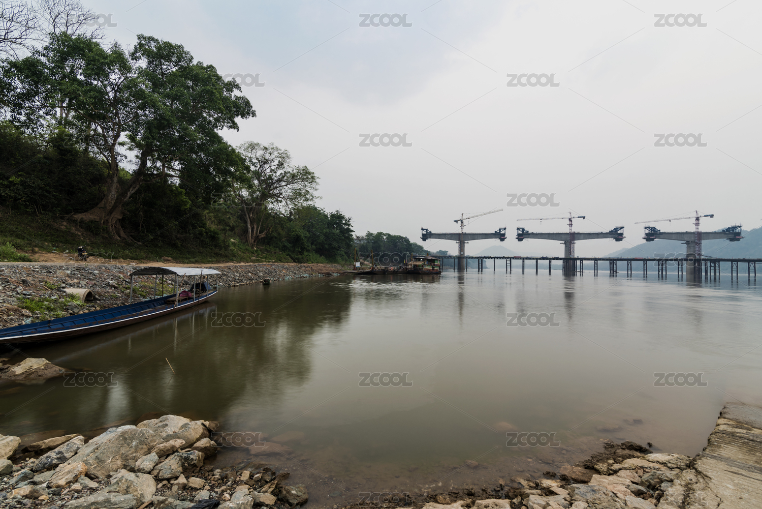 建設(shè)中的一帶一路工程老撾瑯勃拉邦湄公河特大橋