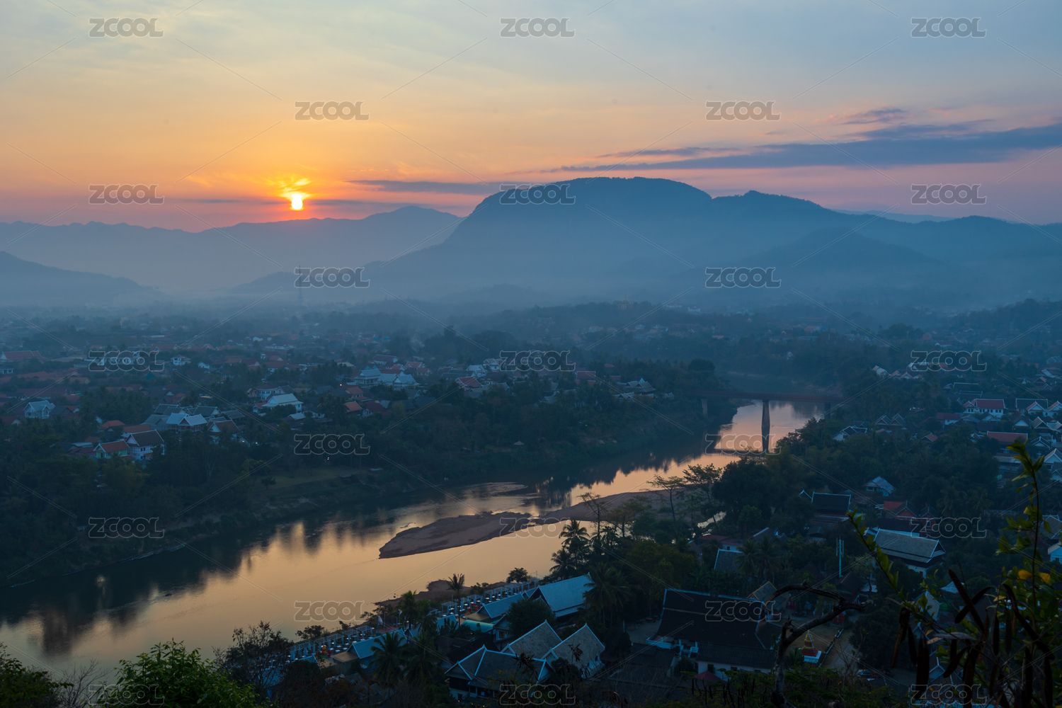 清晨時的老撾瑯勃拉邦鄉(xiāng)村
