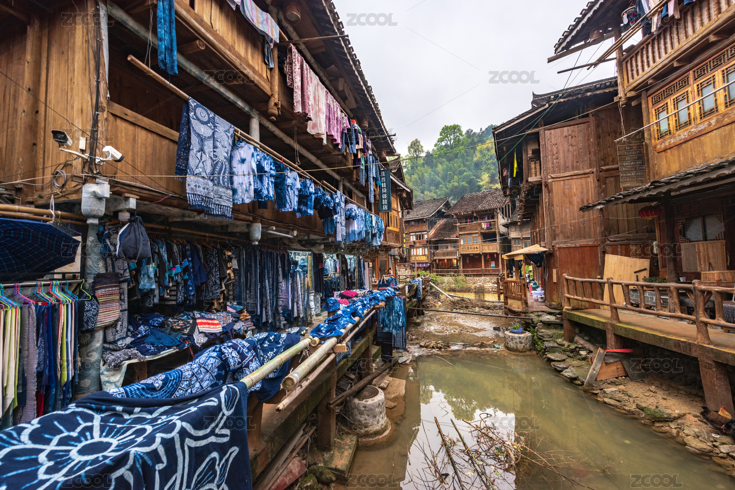 貴州肇興侗寨晾曬的自染布