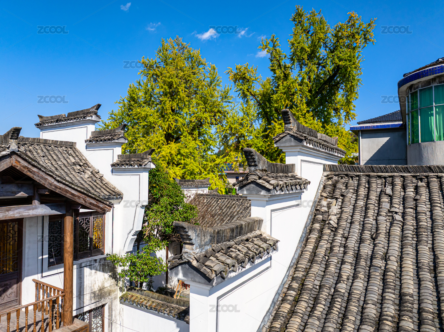 桐廬江南環(huán)溪古村落徽派建筑古銀杏樹