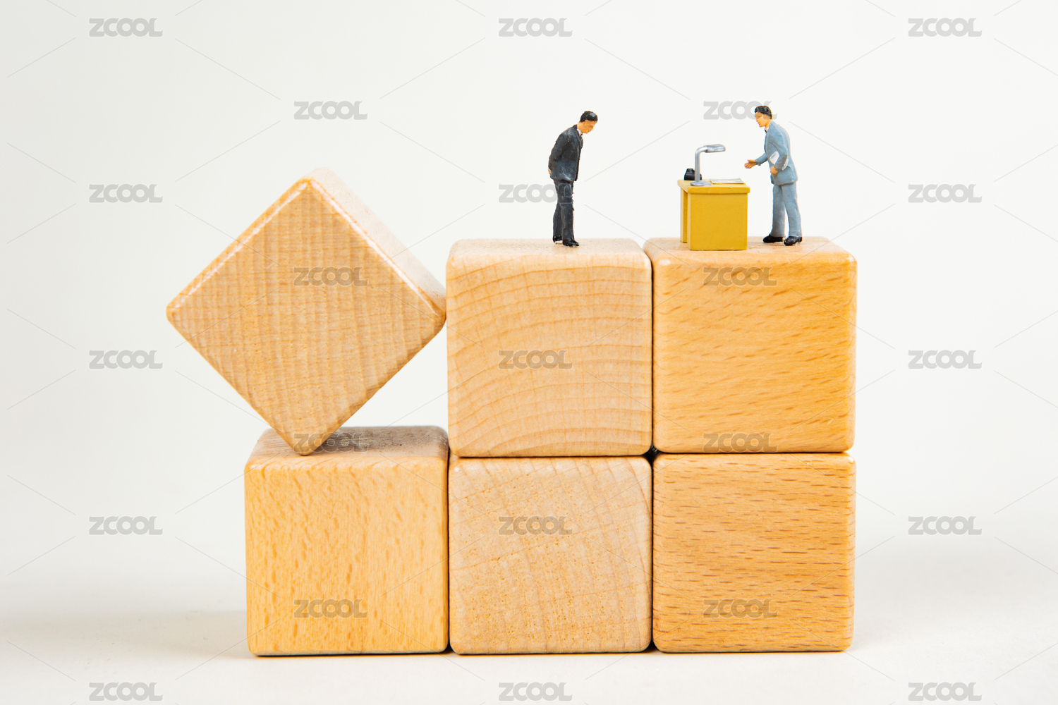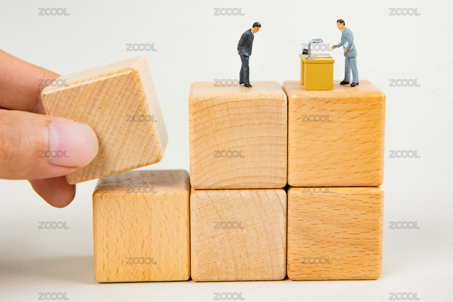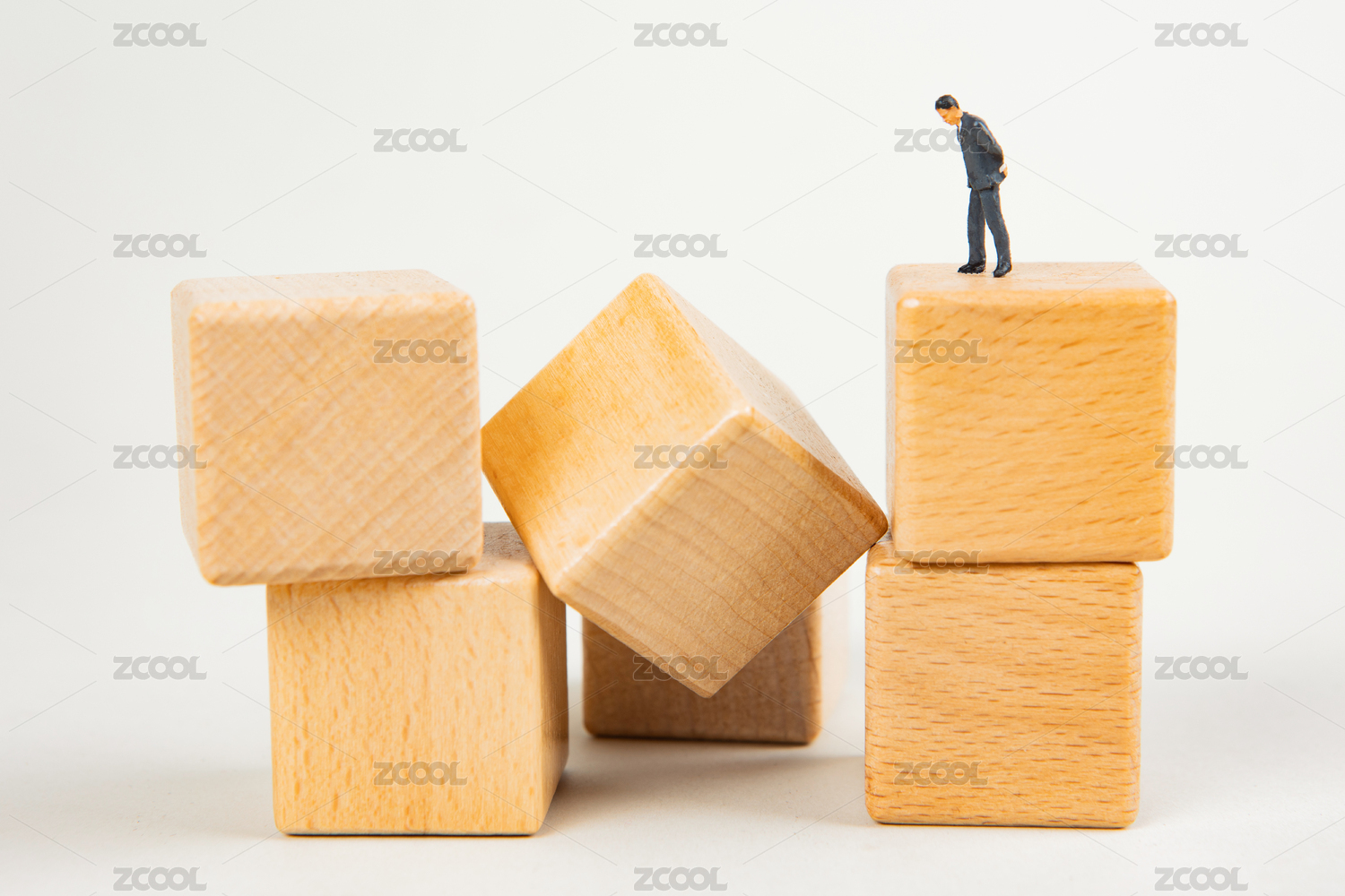 商人在積木前思考風(fēng)險(xiǎn)積木坍塌