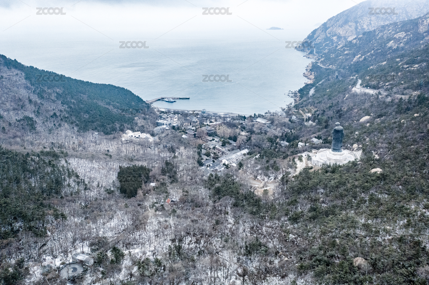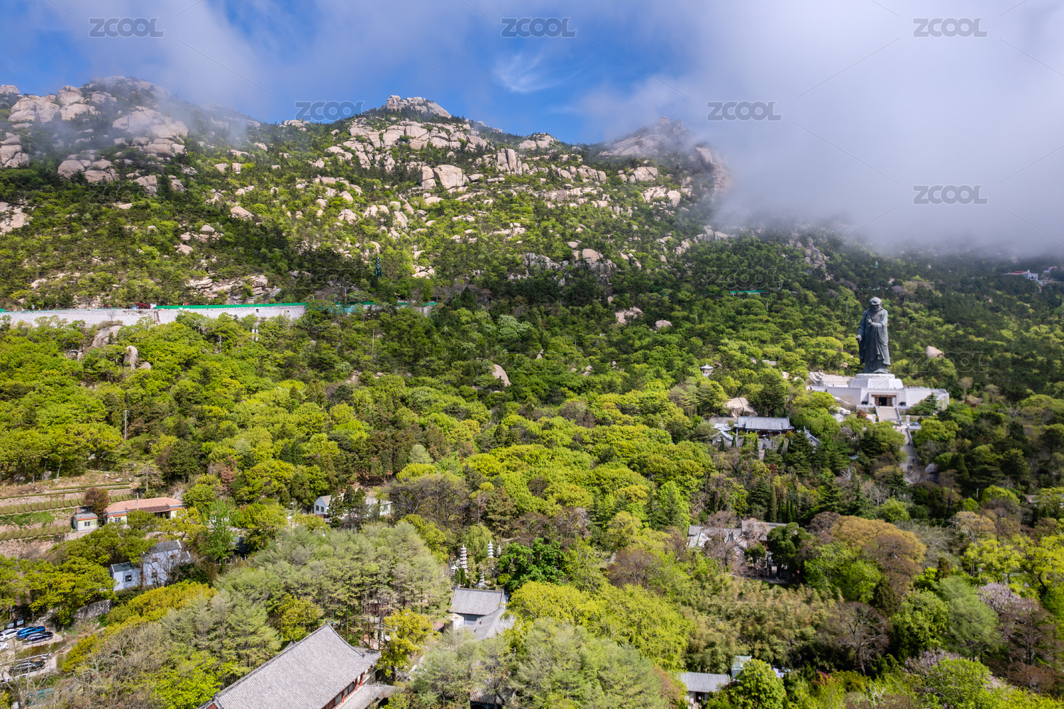 中國山東青島嶗山太清宮老子像風景航拍